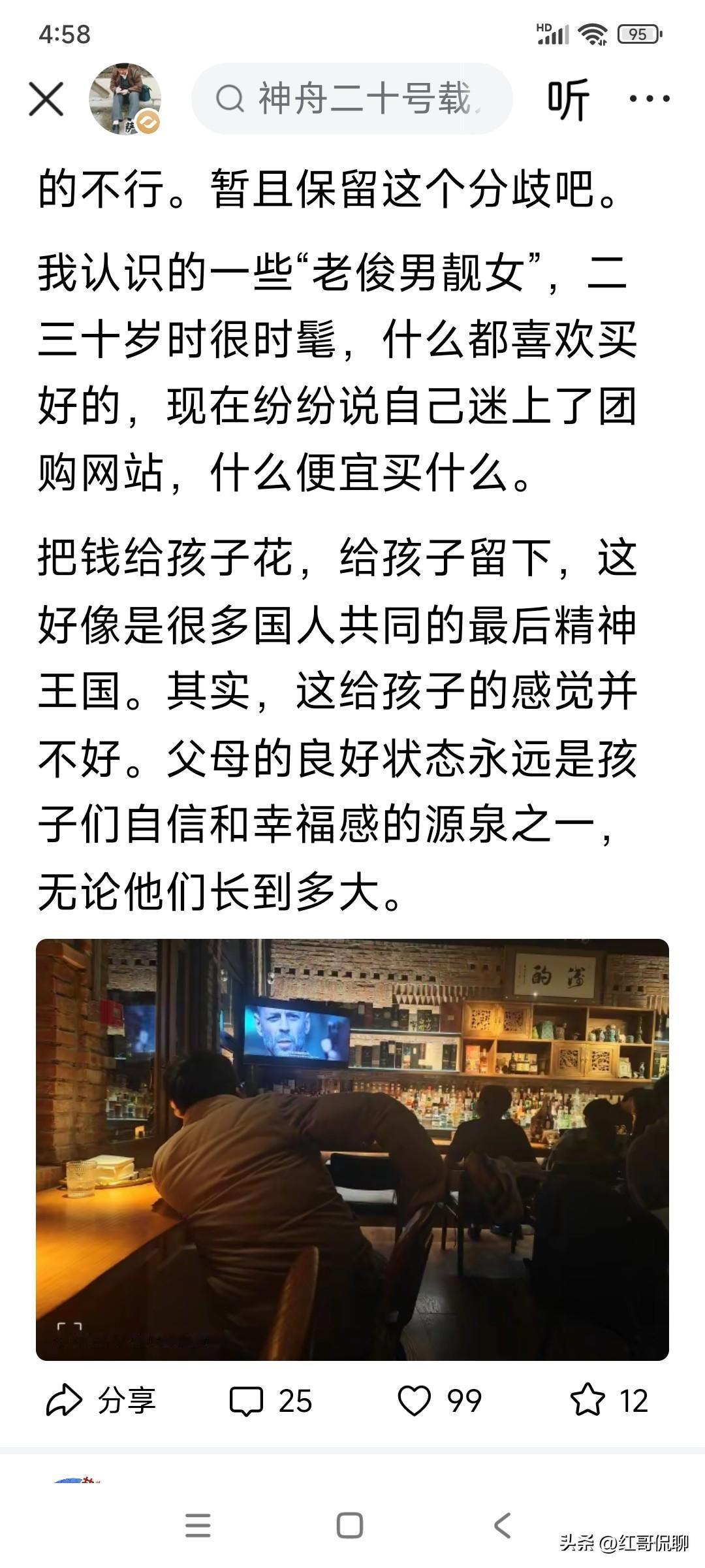 首先,老胡的说法不准确,不去酒吧,不见得就是不消费,不是非得搞得灯红酒绿才叫繁花,其次静静的家里看看书也是一种消费,而且你说的那批人,现在正是忙孙子的时候可能是真正的隐形消费者。