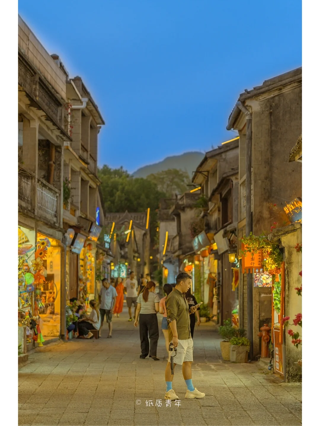4️⃣当蓝调时刻来临,冷色的天空与小店的暖色形成对比,古城瞬间就有了生活气息。