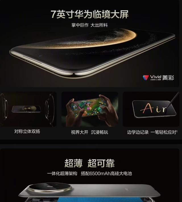 今天上午华为直接以新闻稿的形式上架了首款Air机型,又大又薄,主打与苹果air差异化。 这款手机拿在手里感觉特别轻巧,厚度只有6.6毫米,屏幕却足足有7寸那么大,重量控制在208克,揣兜里几乎没啥负担。 我正窝在办公室桌角堆外卖盒的椅子上,作为总记混型号的军事迷,边扒饭边刷科技新闻,手腕酸胀加上屏幕刺眼,突然看到华为这波操作,心里咯噔一下。 你说现在手机市场卷成啥样了,各家都在拼参数,华为这回倒好,直接亮出处理器型号,摆明了不怕比性能。 电池给到6500毫安,日常用两天估计都不用充电,出门不用带充电宝,这点挺靠谱的。 立体双扬声器放视频的时候声儿特别足,看剧或者打游戏应该挺带劲。 其实手机做薄做大不容易,里头零件得塞得更密,散热可能得下功夫。 华为在材料上可能用了新招数,既保强度又控重量,这技术不是一天两天能搞定的。 部分媒体之前老说国产机只会堆配置,这回华为直接上新闻稿,连发布会都省了,看来是对产品信心足。 最近行业里都在传2025年下半年会有一波轻薄机潮,华为抢先出手,其他厂商可能得赶紧跟进了。 我查数据时总记混年份,回头还得翻记录,但这次华为的规格记得特清楚。 屏幕大了视野开阔,但单手操作可能有点费劲,尤其在地铁上抓扶手的时候,得两只手捧着用。 不过轻薄机的好处是放口袋里不鼓囊,穿修身裤子也不会显得笨重。 电池容量这么大,可能用了新式电芯,能量密度更高,续航才能这么顶。 扬声器调校估计花了心思,低音厚实,高音不刺耳,看电影沉浸感强。 华为这步棋可能想抢高端市场,和苹果的Air系列错开打,不硬碰硬,而是突出自己的长板。 用户要是看重便携和大屏兼顾,这手机挺合适,尤其经常出差或者爱追剧的人,拿着轻快看着爽。 未来手机可能都在往这方向走,轻薄化加长续航,成为主流选择。 你说现在谁不想买个又轻又扛用的设备?华为这回可能带起一波节奏,其他品牌得赶紧亮招了。 这手机定价还没透出来,但估计不会太便宜,毕竟堆了这么多料。 要是价格亲民些,估计能卖爆,毕竟大伙儿现在挑手机都精了,不光看牌子,更看重实在体验。 华为直接标处理器,可能想打消性能疑虑,让用户买得放心。 总的来说,这机型挺瞄准痛点,大屏薄身大电池,基本需求都照顾到了。 最后琢磨琢磨,科技产品更新这么快,华为能抓住时机出招,确实有点东西。 下一波会不会有更多厂商学这路子?咱们等着瞧吧。
