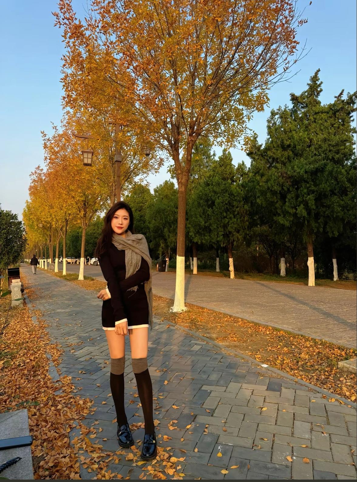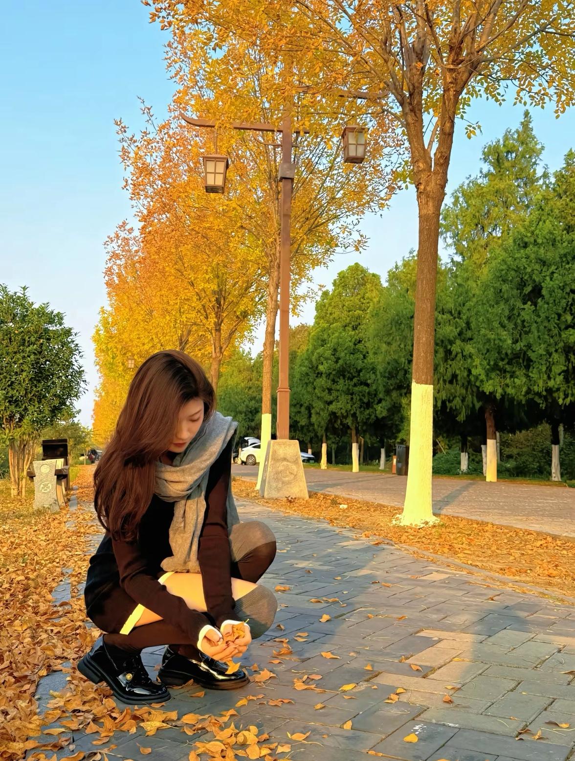 秋日漫步,落叶飘零,时尚穿搭,尽显优雅。