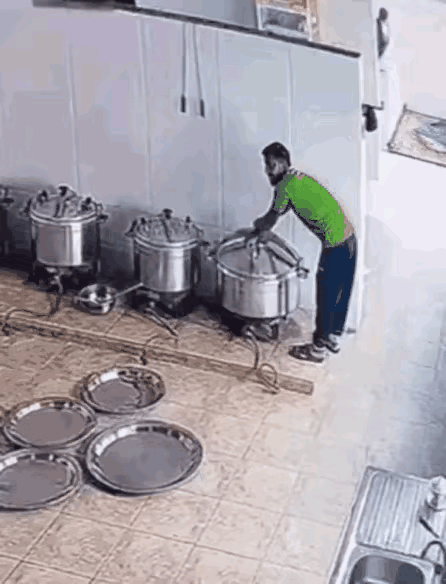 烫死了![白眼] 阿三哥,倒霉的瞬间! 视频中所见,是个里外间,隔断墙的墙根处,排着一溜高压锅,下面通着电,一位三哥弯腰撅腚的站在锅旁,他如此这样,主观目的咱不知道,但接下来的场面,可以确定他是连崩带烫了,看样子不轻。 通过现场蒸汽总量,锅盖飞起高度,骨肉煮食程度,分析这锅肉加热时间不短了,气压很足,汤汁很烂,人家客人还没吃,就被这三哥吃了“头一口”,他可真有“福”呀。[捂脸] 滚烫的肉汁喷了三哥一身,溅了地面一片,三哥脚底打滑,踉踉跄跄朝室外跑去,同时还不忘脱衣,估计当时叽里咕噜的喊着“外国话”,看他“兴高采烈”奔跑的样子,嘴里貌似嚷到,“好香的肉呀,就是有点咸”。 以上调侃完毕,下面咱说一个细节,这个视频谁拍的,为什么镜头后期取景范围改变了呢? 视频窗口斜行向下,室内屋角位置适合,如此厨房空间,应该是日常监控录取,爆炸初期,虽然震动很大,但镜头纹丝不动,但三哥跑出去后,镜头竟然诡异的下压、晃动,这是什么原因。 通过高压锅内食材飞溅的角度分析,不排除一块肉飞到监控器上方屋顶,短暂沾附几秒,然后自然跌落,刚好砸在监控器前端,导致镜头下压和晃动,您认为有道理吗? 话说,生活中要注重细节,你会获取到很多信息,感谢阅读![作揖]