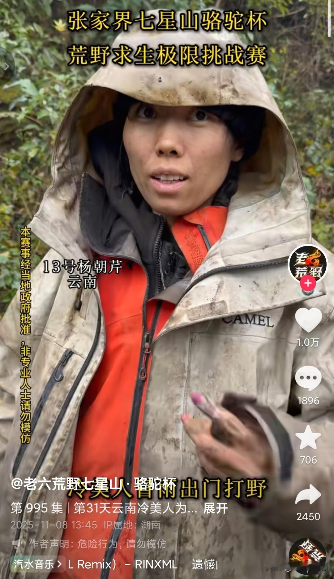 “怀疑节目组暗中相助13号选手冷美人”, 我看了应该不太可能,11月8号的视频,眼神都有点恍惚,全靠毅力在坚持,都已经饿成杆杆了,都能看到骨头了。 她在此次挑战带来了一波流量,这个挑战赛得以爆火,观众们都喜欢他那坚韧不拔的性格,吃苦耐劳的心,关键还是赛场上唯一一个女生。 当然怀疑也要有依据的,安全员要24小时看好她,是因为她现在身体状况不太好,肢体动作已经不自然,不能凭借自己的猜测,比赛求的就是一个公平公正,选手之间互相监督