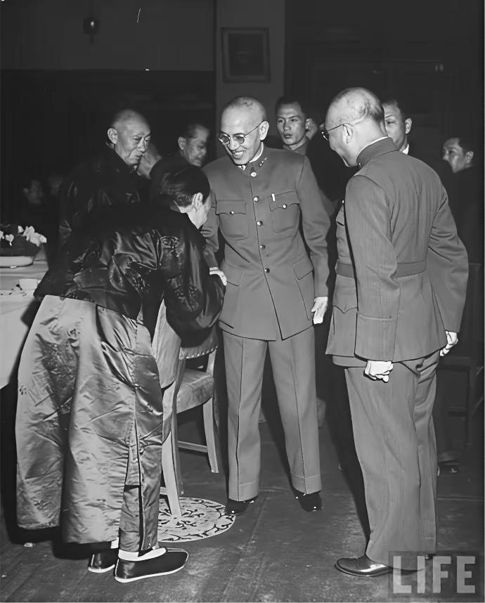 大家猜猜这个低头哈腰的是谁? 这图是当年抗战胜利后,老蒋意气风发来到上海,会见上海的工商代表时的照片。