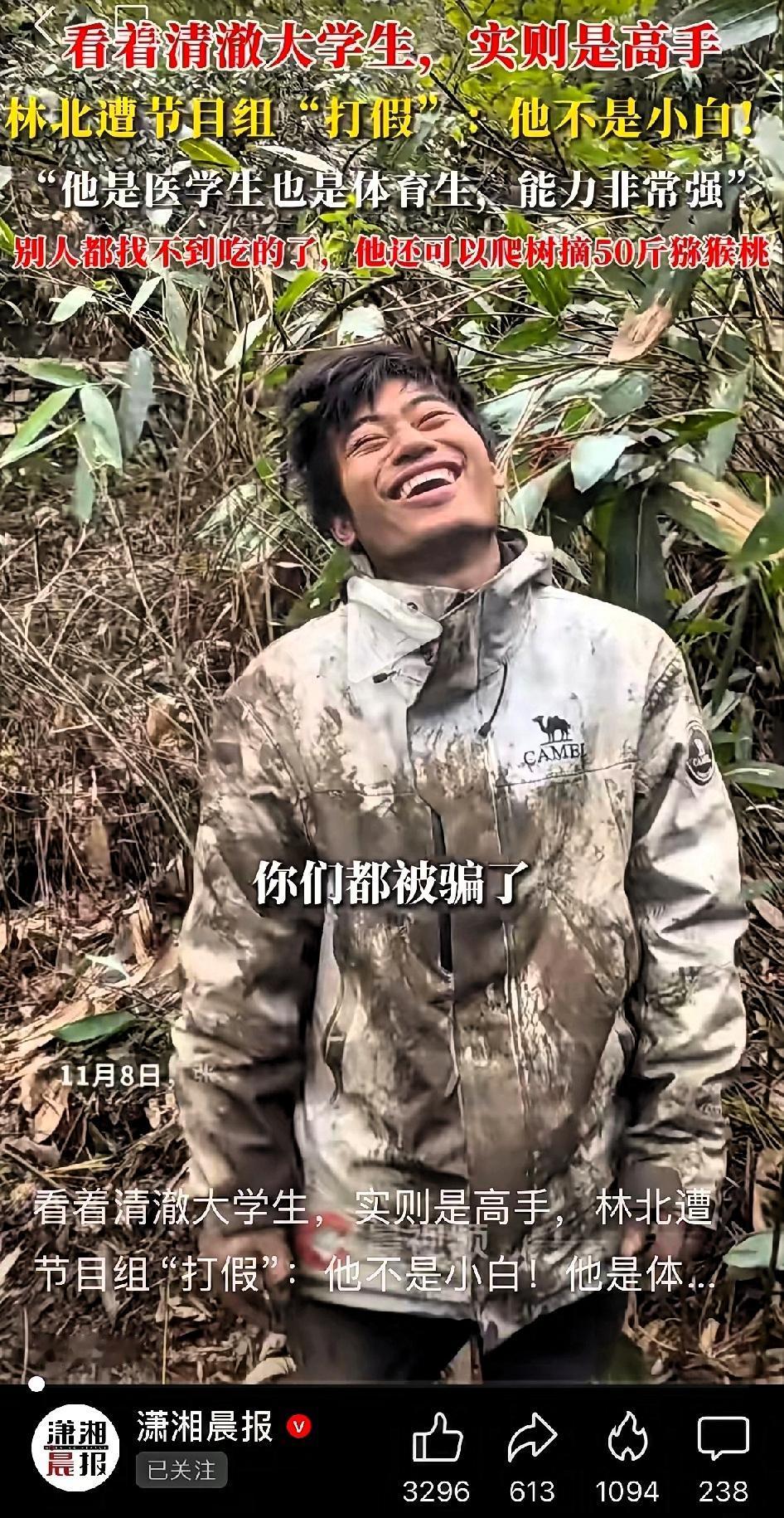 “医学生秒变体育生!”荒野求生里,林北憨笑藏拙,结果柴火捡双倍、大木轻松扛,还爬树给女友留猕猴桃,网友:这女婿我先预定! 林北初登场只被记住“哈哈哈”大笑,谁料他拾柴量是别人几倍,一根粗木轻松上肩,众人才发现他表面医学生却不输体育生,藏的够深! 天越来越冷,柴火成硬通货,他又被拍到攀数米高树摘猕猴桃,别人饿晕,他还想着留果给女友,并且大方公开找盐技巧,赢得大批观众好感。 节目过半,体力、资源、人品三在线,网友辣评:别笑他憨,这是真·黑马,坚持到最后一点不稀奇! 对于这件事情,大家有什么看法?上热门 荒野求生比赛