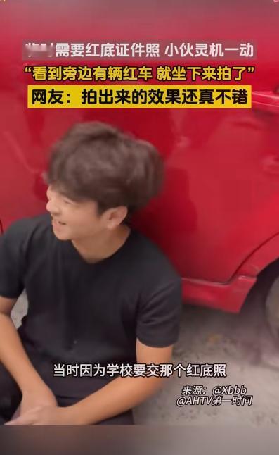 “人怎么能这么聪明!”11月4日,广东潮州,一男生收到学校通知,需要上交红底的证件照,可是去照相馆现拍已经来不及,男生灵机一动想出一个妙招,他在路边找了一辆红颜色的车,然后坐在地上背靠汽车,让朋友帮忙拍照!网友:年轻人的脑子就是好使。 事情发生在一天放学之后,那时候小洲(化名)刚走出校门,就看到班主任在群里发的消息,要交红底证件照,截止时间就在当天傍晚。 这下可给他急坏了,家里面根本就没有红色的背景,而且等他跑去附近照相馆问,不仅要排队,价格还不便宜,一来一回说不定就赶不上截止时间了。 随后小洲拉着同学在校门外的小路上转了一圈,眼睛一亮,就盯上了一辆停在路边的红色小车,那车身颜色特别正,当时的光线也刚刚好,看着就不用后期抠图,完全能达到学校要的红底效果。 等他和朋友对视了一下之后两人一拍即合,小洲让同学帮忙关好车门,自己脱下外套,直接坐在地上,后背紧紧贴着车尾。 调整完角度之后,很快就拍好了,整个过程特别快,不到五分钟就拍完了,一共就拍了三张,简单、直接,还省时间。 后来小洲还把拍照片的过程录了段小视频,配文说 “紧急情况下,创意就是生产力”,这段视频在同学群里被转发后,不少人都在评论区点赞,夸他脑子转得快。 事后很多网友看了之后,有一些人在下面评论说他反应快、动手能力强,这种临时想办法的本事,特别能体现年轻人的创造力。 但也有人担心安全问题,说坐在人行道上,还靠近停着的车,万一有车开过来,或者这辆车突然动了,多危险啊。 还有人提醒,学校对证件照的要求可能没那么宽松,说不定会严格到要求背景是纯单一颜色,建议以后还是尽量去正规照相馆拍,免得照片交上去又被退回来。 有时候,智慧不在于条件多好,而在于能不能在有限的时间里找到最简单的办法,这件事情里面的做法看似随性,却展现了年轻人独有的灵活与创造力。 通过这件事情也告诉我们其实在生活中,很多难题其实并不复杂,只要肯动脑、肯尝试,就能找到意想不到的解决办法,在最普通的日子里,迸发出让人会心一笑的智慧。 对此,你还有什么看法呢? (信息来源 :在线315 )