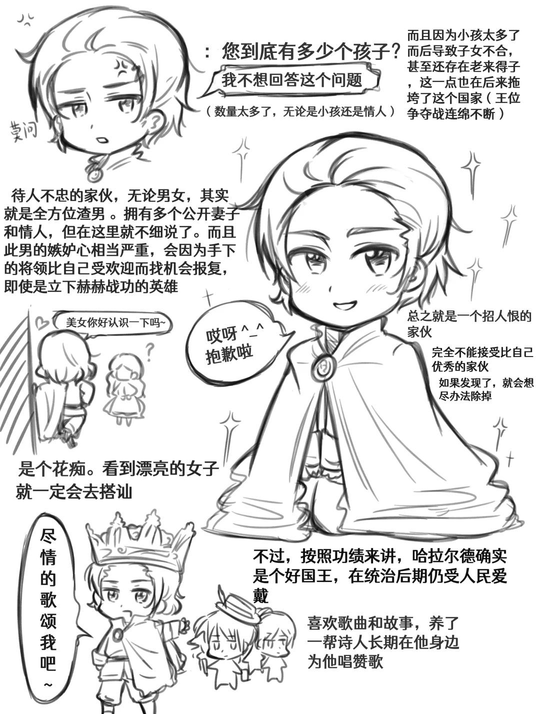 ◆②挪威国王图鉴 这个家伙的性格很有意思。 而且活了60岁算挪威国王里岁数较高的了 一款命很长的花心男 挪威国王黑塔利亚仿画风 挪威史同