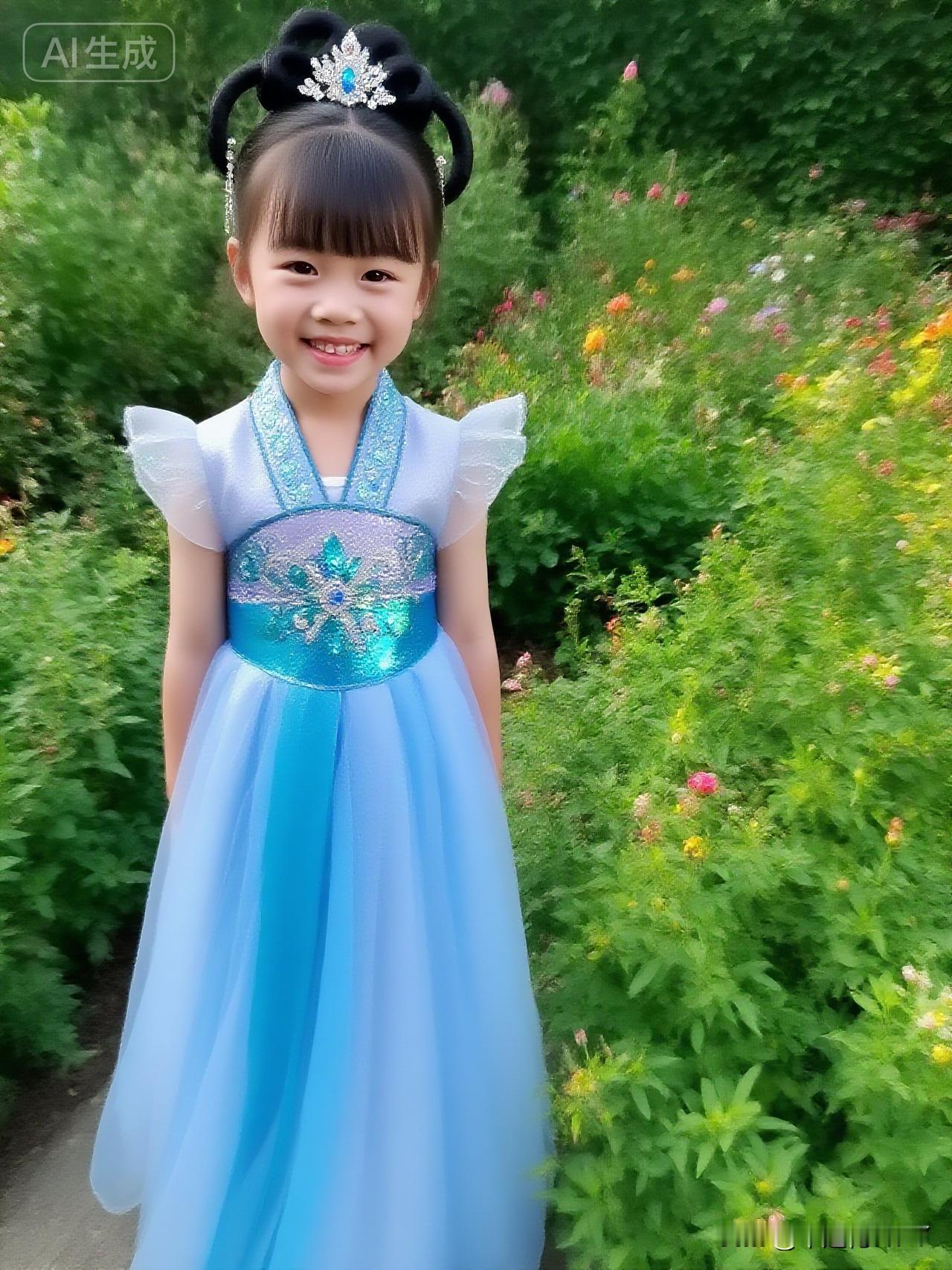 谁懂啊!刷到这组图的时候,直接被这小姑娘的笑容戳中了! 蓝白渐变的汉服像把夏天的晴空裁成了裙子,清透的纱袖飘起来的时候,连风都跟着温柔了。头上的发饰blingbling的,配着圆圆的发髻,活脱脱从古风绘本里跑出来的小仙童 站在开满花的小路上,她一笑,露出的小牙齿都带着甜气,连背景里的花花草草都好像跟着亮了起来。这大概就是“童年该有的样子”吧——穿喜欢的裙子,在风里笑,把普通的午后都变成闪闪发光的童话✨ 突然好羡慕现在的小朋友,能光明正大地穿汉服逛公园,把传统文化穿成日常的浪漫~要是我小时候有这么仙的裙子,能在小区里转三圈! (谁能拒绝这么甜的小仙女儿啊!评论区交出你们家娃的汉服美照