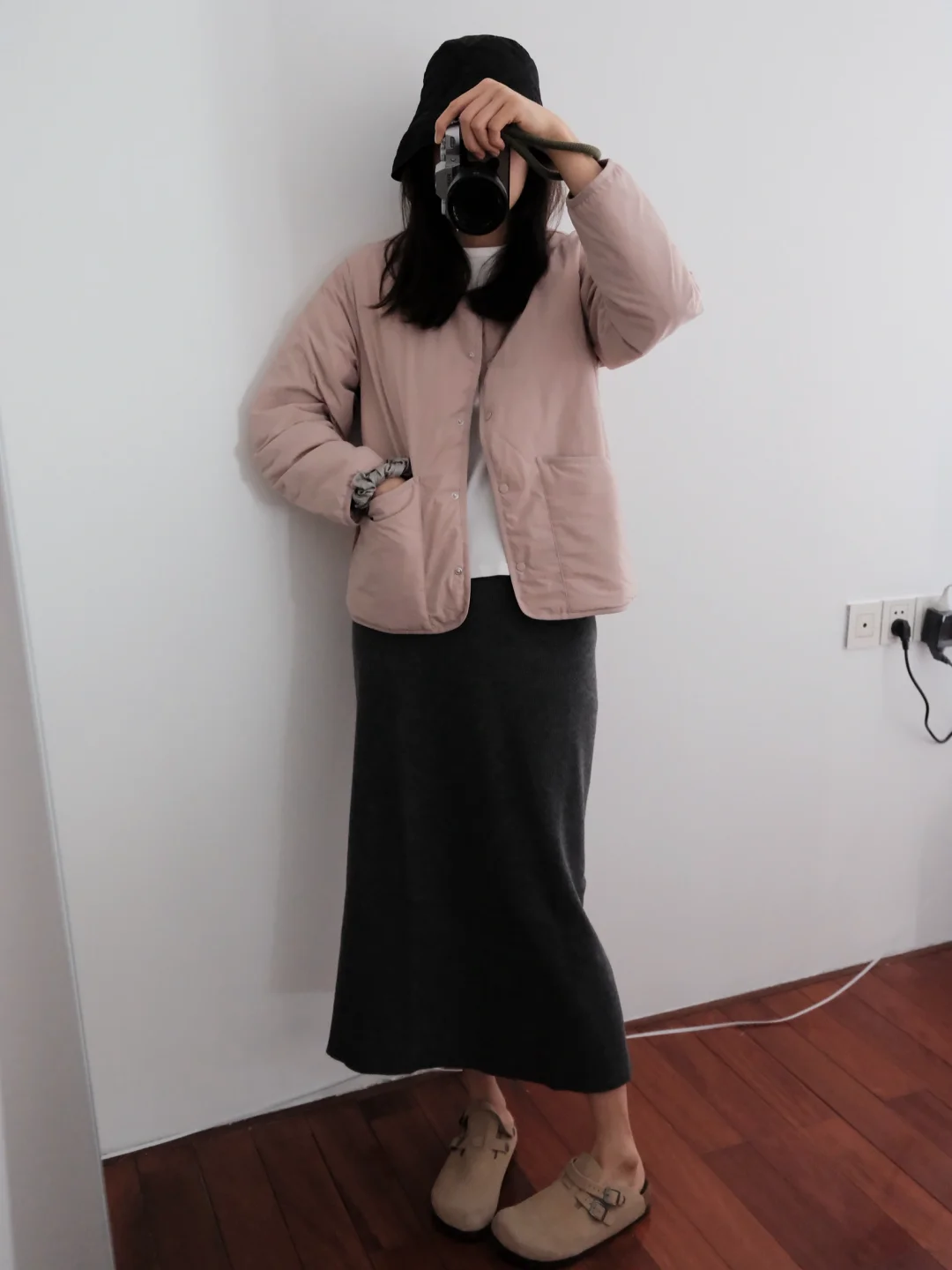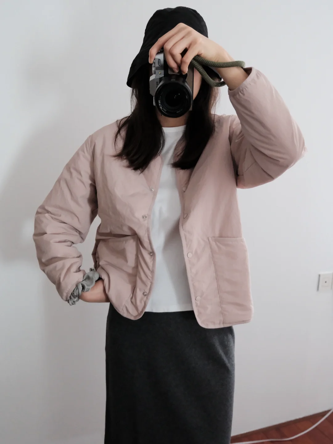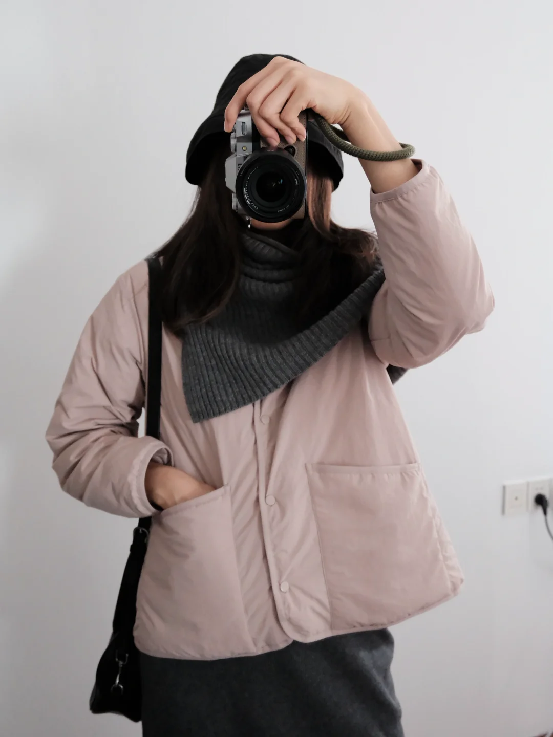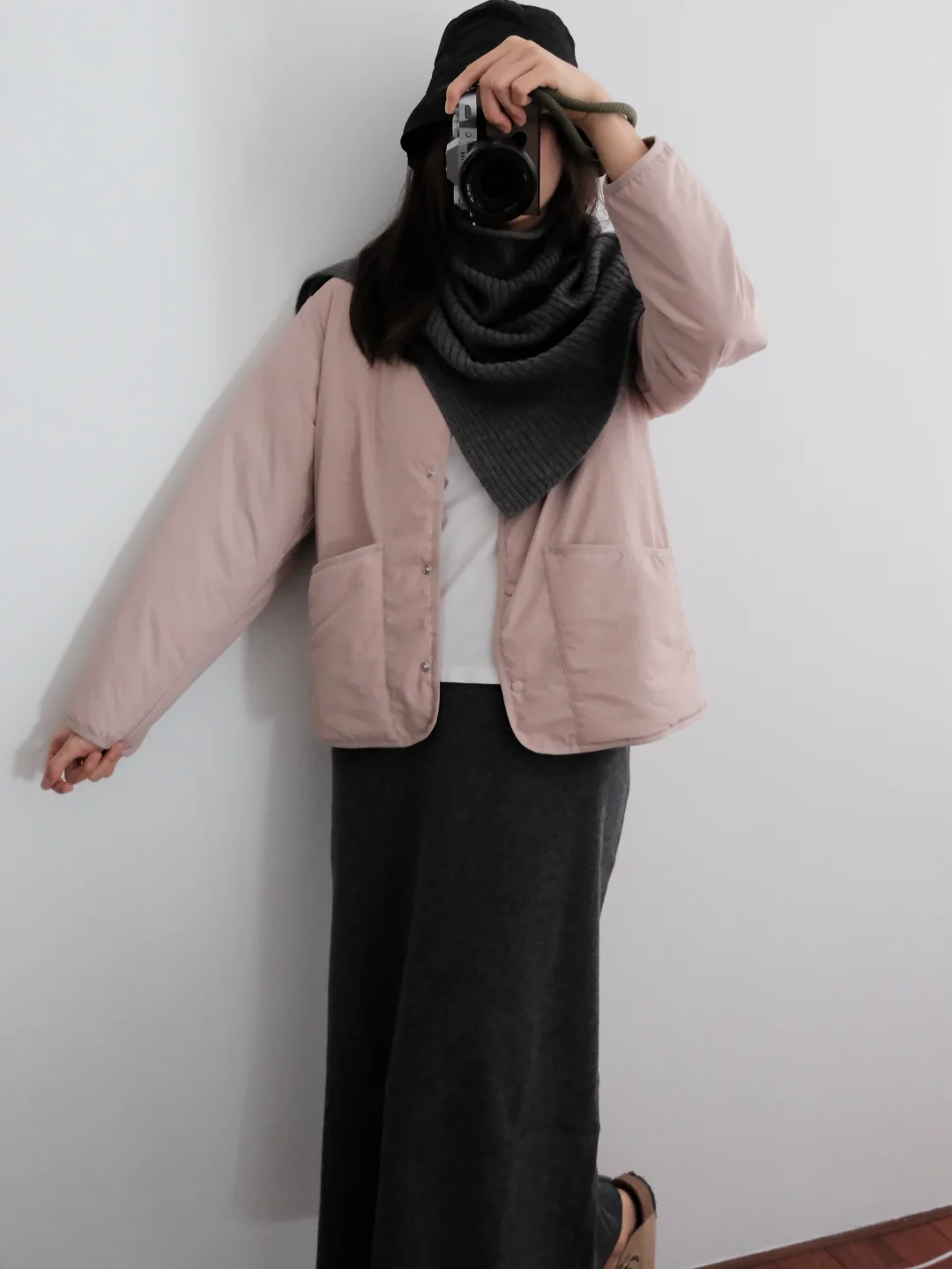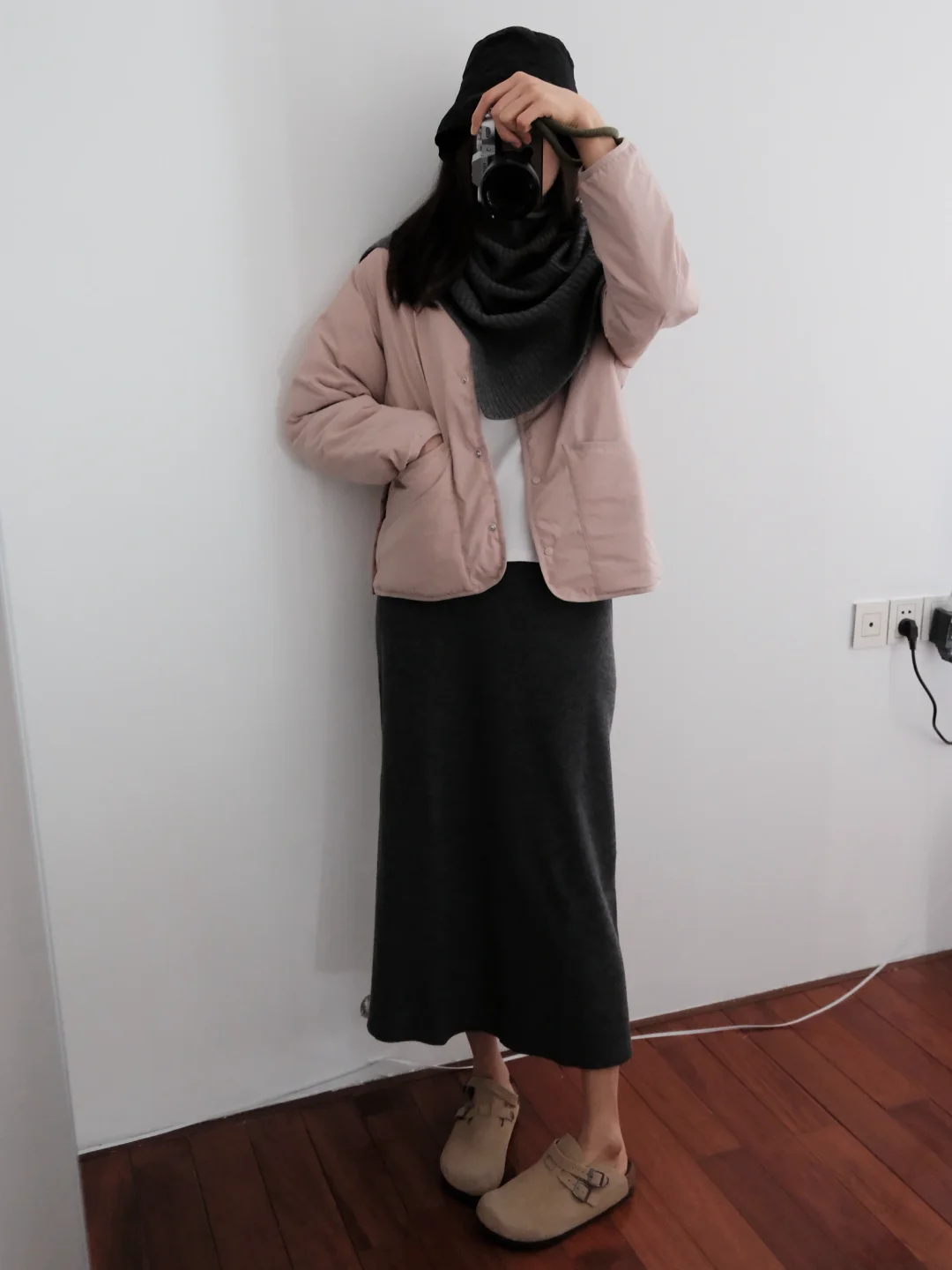 Muji无领羽绒服和围脖灰粉眼前一亮🌸✨