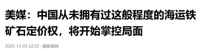 国运来了挡都挡不住,30亿吨铁矿重见天日,美国媒体:中国将改写全球铁矿格局!11月4日台媒爆料,一条全新铁路在西非正式投入运营,西芒杜铁矿将在今年实现出口,然而这样的状况也引来外媒的担忧:中国从未拥有过如此程度的海运铁矿定价权! 要说这西芒杜铁矿,可不是新发现的宝贝。早在20世纪50年代,法国殖民者就勘探到了这片矿床。它藏在几内亚东南部的雨林深处,四周全是密林,地质学家当年都发愁怎么进场作业。后来探测数据出来,所有人都惊呆了。这片矿床储量至少30亿吨,铁矿石平均品位超过65%,远高于全球平均水平,业内都叫它“皮尔巴拉杀手”。 而澳大利亚的力拓集团最早拿到了开采权,可力拓折腾了几十年,矿床还是沉睡状态。几内亚频繁的政治动荡、没完没了的腐败丑闻,还有企业间的矿权纠纷,都让力拓头疼不已。更关键的是,开发需要建铁路和港口,这笔投入高达230亿美元,力拓根本扛不住。 在中方介入后,僵局彻底被打破。从2010年开始,中国企业就逐步增持项目股份。2024年6月,中国宝武集团牵头的“宝联体”正式加入,加上中铝集团的持股,中国企业总共掌控了项目约75%的产能。力拓只剩下25%的份额,彻底失去了主导权。 解决了股权问题,中方立刻启动基础设施建设。那条11月4日投入运营的铁路,全长超过600公里,是跨几内亚的多用途铁路。中铁十八局负责修建支线,中国港湾则承建港口。其中一座307米长的铁路桥,仅用一个多月就完工,技术团队直接复制了京沪高铁的桥梁模式。力拓的高管都忍不住感慨,中国拥有西方不具备的建设技能。 显然这套港铁一体化设施可不简单,它能支撑每年1.2亿吨铁矿石的出口量,相当于中国年进口量的1/10,全球总产量的7%以上。首批20万吨矿石已经准备装船,年底就会由散货船运抵中国。 而西芒杜的投产直接冲击了全球铁矿的垄断格局。以前力拓、必和必拓、淡水河谷三家掌控了全球过半的产量。现在几内亚靠着这个项目,直接跻身非洲第二大矿产出口国。中国对澳大利亚铁矿的依赖度,肉眼可见地下降。 彭博社11月3日的报道里,直接引用分析师的话说,中国从未拥有过这般程度的海运铁矿定价权。潘穆尔利伯勒姆公司的策略主管汤姆·普莱斯明确表示,中国将开始在这里掌控局面。 中方的布局不止于开采。咱们还承诺帮几内亚建本土钢厂,助力当地经济转型。这种深度合作,让几内亚政府全力支持项目推进。相比之下,西方资本只想着挖矿赚钱,根本不愿投入基础设施建设。 现在再看全球铁矿市场,风向真的变了。中国不再是只能看别人脸色的买家。手握西芒杜的高品位矿石,又掌控着运输通道,咱们在价格谈判时腰杆硬了太多。那些曾经垄断市场的澳巴巨头,不得不重新考虑对华合作策略。 这场格局改写,不是运气使然。从股权谈判到铁路修建,从技术输出到产能规划,每一步都透着中国的战略眼光和执行力。30亿吨铁矿重见天日的背后,是中国制造业对资源安全的迫切需求,更是国家实力的直接体现。未来全球铁矿的游戏规则,确实要跟着变了。 来源:观察者网 【美媒:中国从未拥有过这般程度的海运铁矿石定价权,将开始掌控局面】