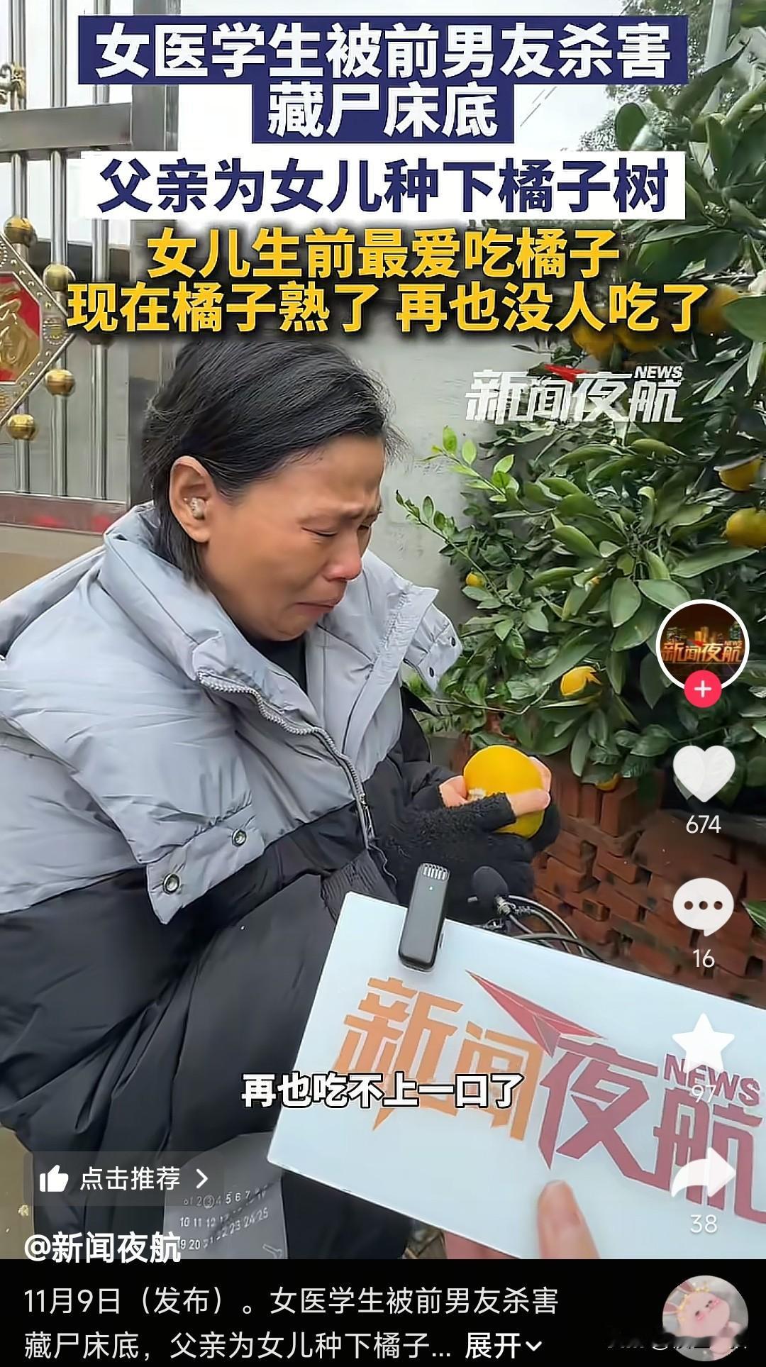 自己身患癌症,女儿又走了,爸爸为她种的那个橘子树,再也吃不到了,2024年11月1号,女医学生被前男友杀害,藏尸床底。 分手后男方联系见面,以讨论网店经营,约她在出租屋见面,李群跟现男友有约,着急离开,林某强与其发生争执,过程中用双手用力掐住颈部,直至死亡。 我唯一想不明白的是,竟然分手后,在有现男友的情况下,会约在私密房间见面,有事相商,一个视频电话就可以解决,做人做事没分寸,也不考虑自己的安全。 见面也要在公共场合,别去家里,对方真图谋不轨,你一个弱女子根本不是对手,哪怕你很谨慎,在他的地盘,要是提前做好手脚,你根本没法防备,真正懂边界的人,心里没鬼的人,是不会总想着把你约到他的地盘的,不是所有男的都这样,但你赌不起。