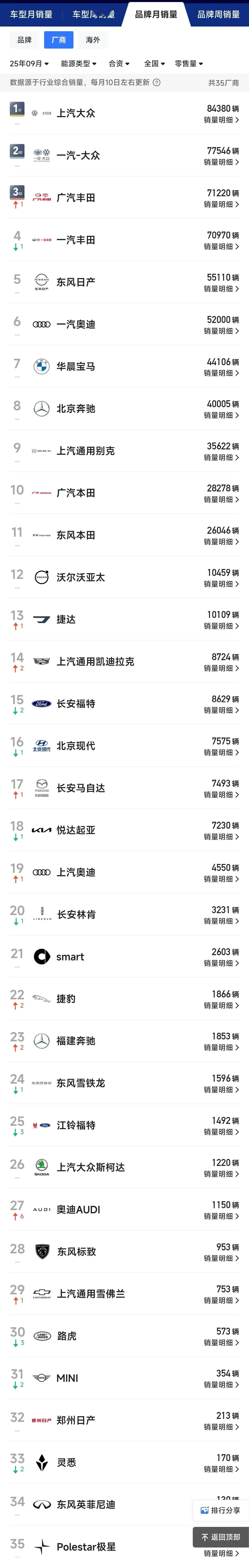 合资品牌汽车9月销量 英菲尼迪130辆 MINI354辆 路虎573辆 雪佛兰753辆 标致953辆 斯柯达1220辆 雪铁龙1596辆 捷豹1866辆 林肯3231辆 起亚7230辆 马自达7493 现代7575辆 长安福特8629 凯迪拉克8725辆 沃尔沃10459辆