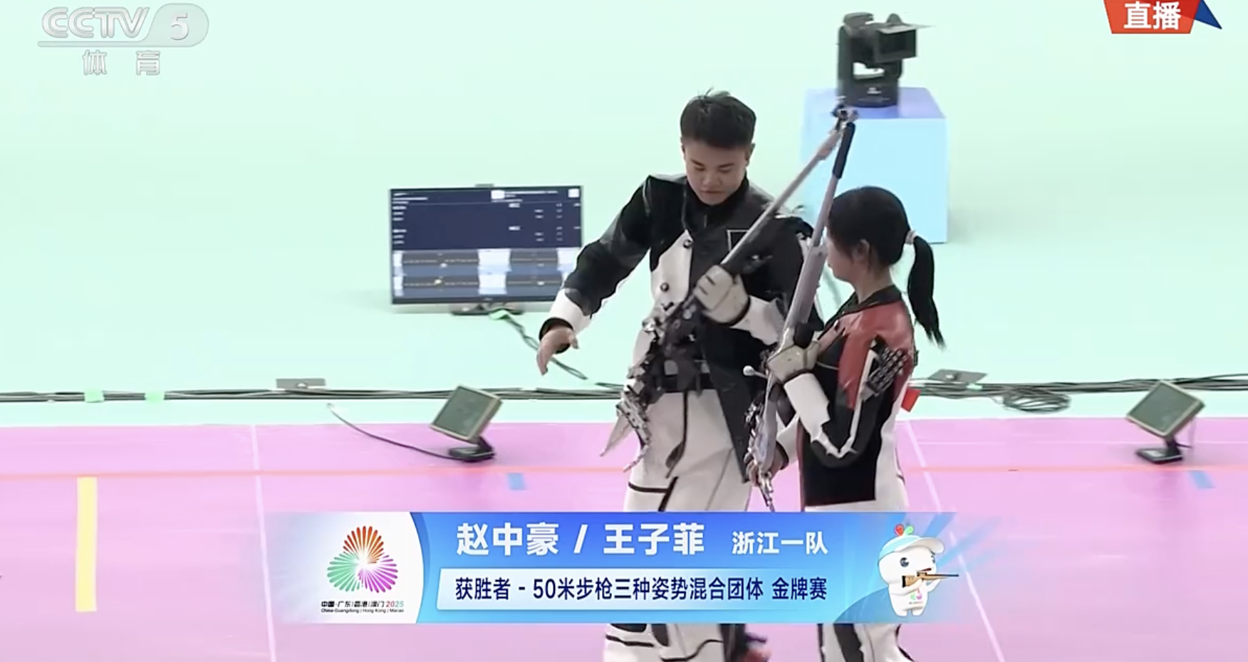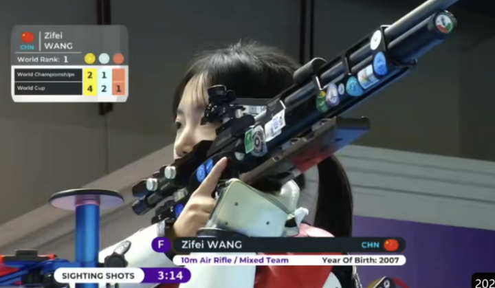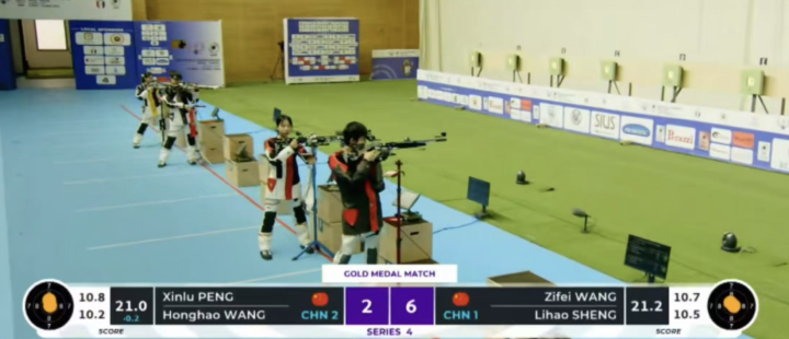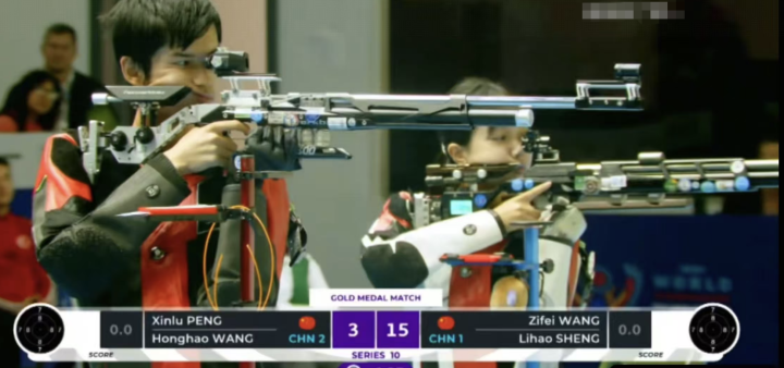 在刚刚进行的10米气步枪混合团体金牌赛,两组中国选手彭鑫露/王竑昊和王子菲/盛李豪现场对战,中国队提前包揽世锦赛该项目金银牌。特别值得一提的是,自2018年射击世锦赛设立10米气步枪混合团体项目以来,中国队取得了四连冠,从未让冠军旁落。两组选手此前也分别拿到了10米气步枪女子团体和男子团体的金牌。