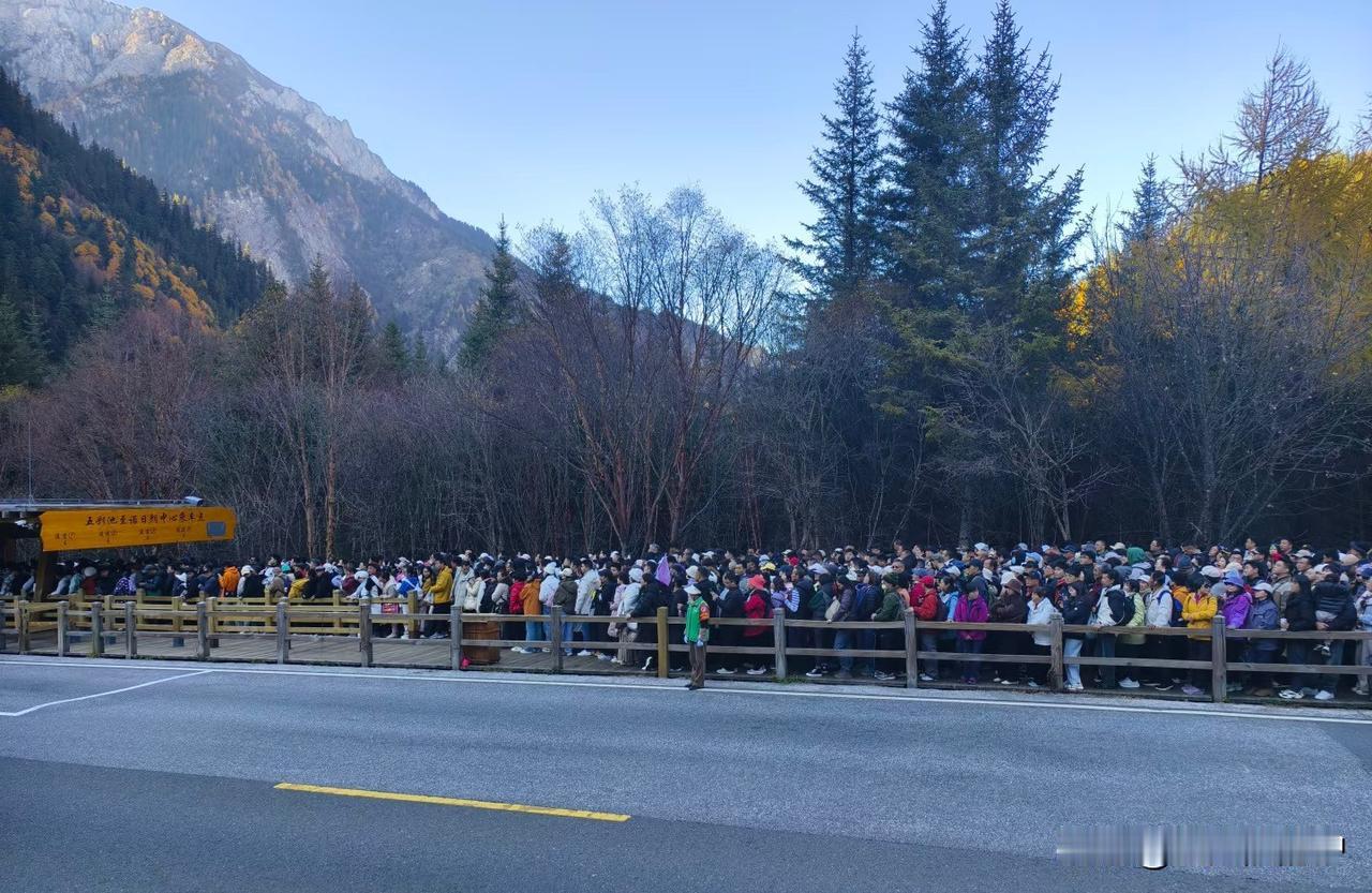 九寨沟近期真心建议放弃左线! 11月8日九寨沟又冲4万客流,彩林旺季的人潮直接把美景“挤变形”,来过的人不提前说,真是把“坑”藏得严严实实! 左线长海+五彩池,真心劝近期来的朋友慎选!五彩池美是真的美,但现场全是人、全是人、全是人!全程只能在人缝里找角度拍两张,根本没法好好赏景;长海也只能远观打卡,连多站会儿的空隙都少。就这两个景点,来回至少耗1个半小时,对我这种爱边走边玩、慢慢拍的人来说,纯属浪费时间(划重点:仅针对近期旺季,淡季来五彩池绝对值得!)。 另外必须吐槽:平时不爱运动的人,来这人均2万步直接累瘫!走到后面别说赏景,连抬头的力气都没有,晚上9点倒头就睡。复盘下来,要是把左线的时间省下来,用来深度玩右线和中线,既不用赶路排队,也能好好感受风景,不至于全程走马观花。 最后给女生提个关键提醒:近期旺季女厕所排队超久,建议前两天千万别吃易拉肚子的食物,不然真的会陷入“急到跳脚还得排队”的尴尬!