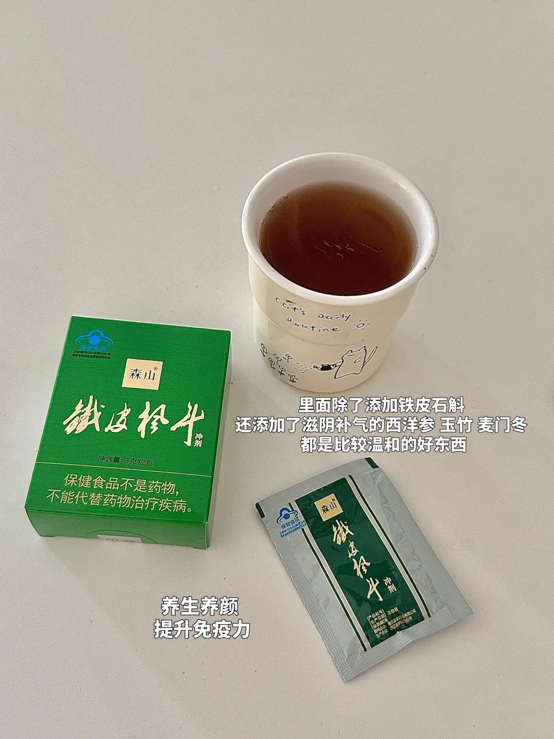 .每天是睡也睡不醒 起也起不来 晚上疯狂熬夜,白天上班没精神,这已经成为现状了,白天起来脸都黄黄的整个人都没精神,真是随着年龄身体机能明显不一样啦,换季还给你小感小冒一下,平常我就爱捣鼓一些养生的水喝,这次听人家说试试喝石斛水,我知道石斛是很不错滋补品 自己也没时间熬汤 也怕自己搭配不好比例,于是我就买了铁皮枫斗冲剂主要冲剂方便很多,里面主要成分铁皮石斛是可以很好的调节身体免疫力,每天早晚各喝一包,做了功课 里面的配方是非常科学的 西洋参➕玉竹,麦门冬等成分,坚持喝一段时间会明显感觉熬夜过后状态好很多。不能只在意外在的保养,内调同样重要!