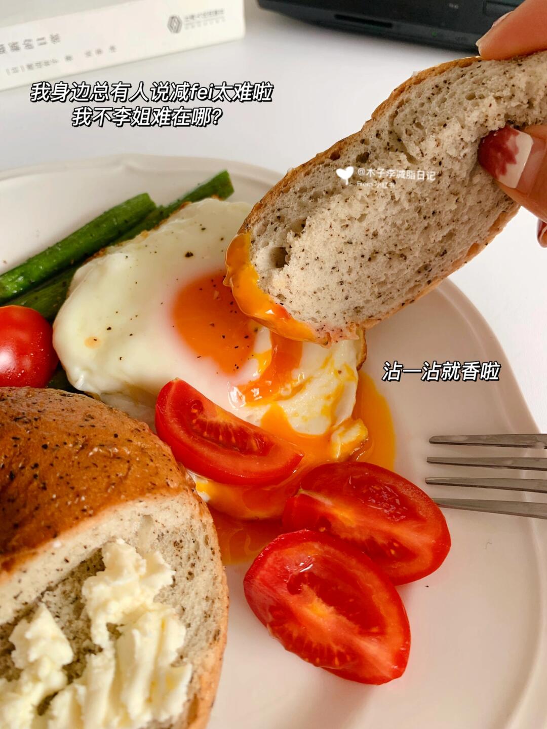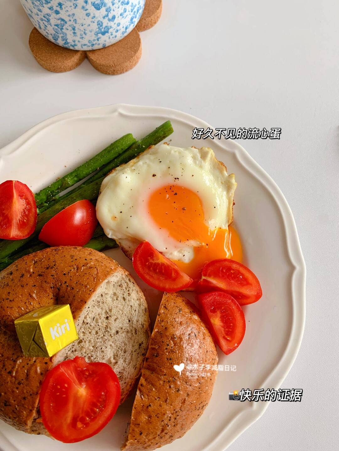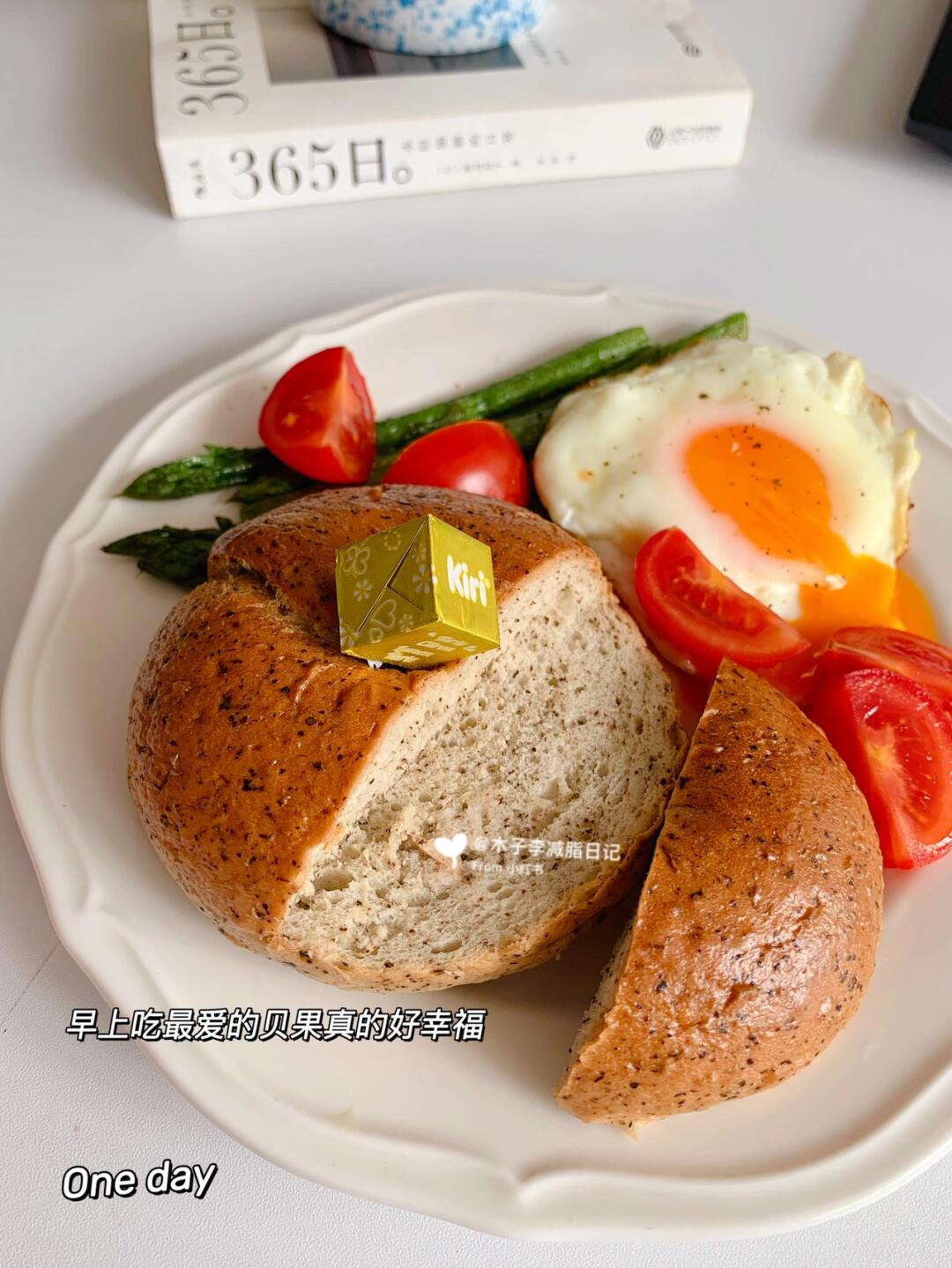 🍳早餐:红茶贝果|煎蛋|千禧果|芦笋|黑咖啡|多莓饮