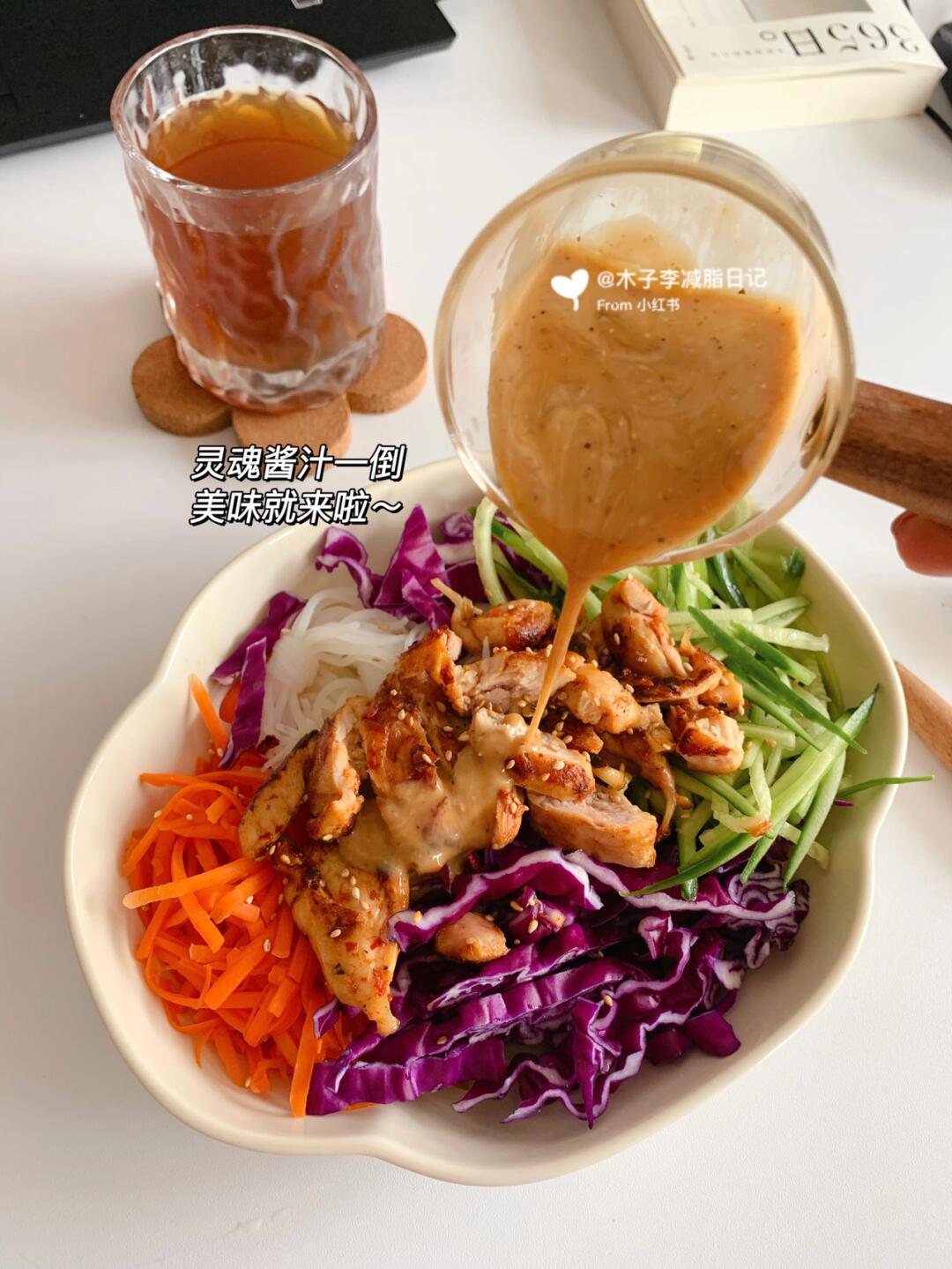🥣午餐:鸡腿肉蔬菜沙拉🥗|红茶