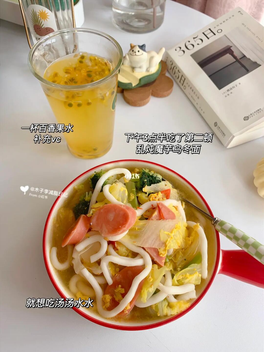 🥣午餐:乱炖魔芋乌冬面|百香果水