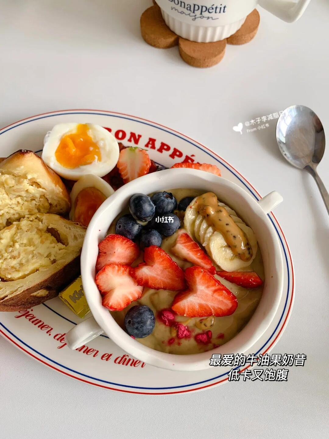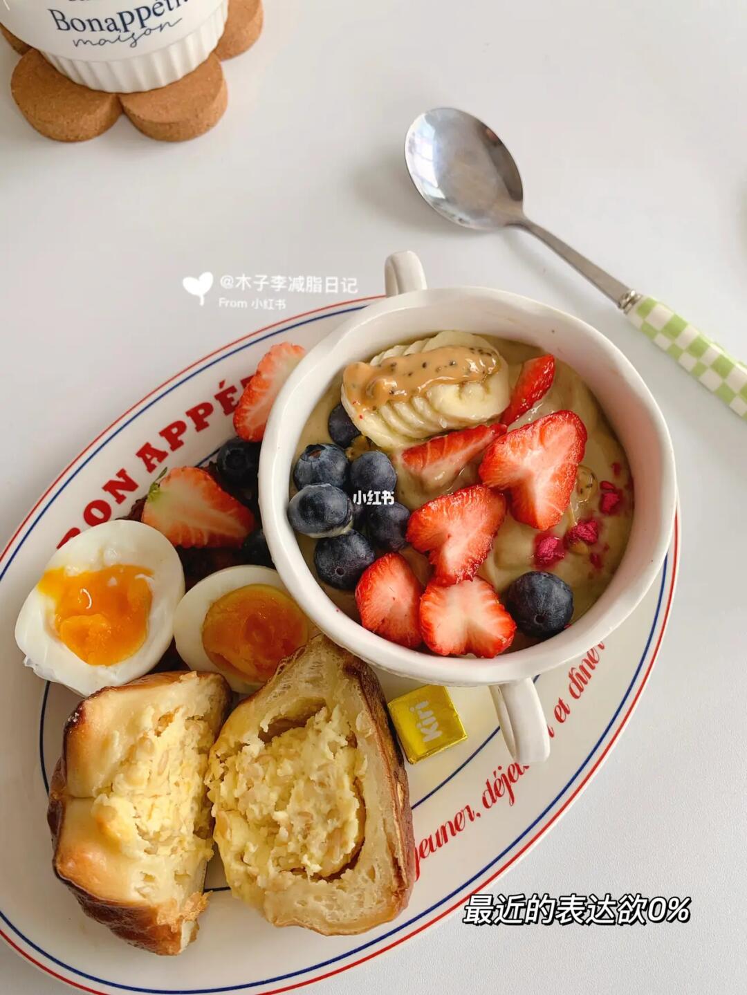 🍳早餐:溏心蛋|奶昔碗|燕麦米碱水|草莓🍓|挂耳黑咖|奶酪🧀