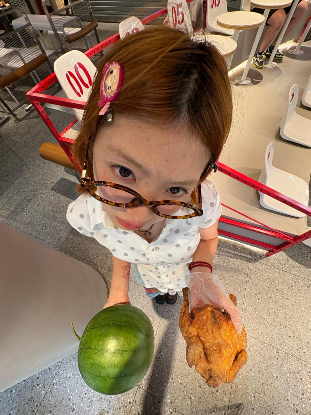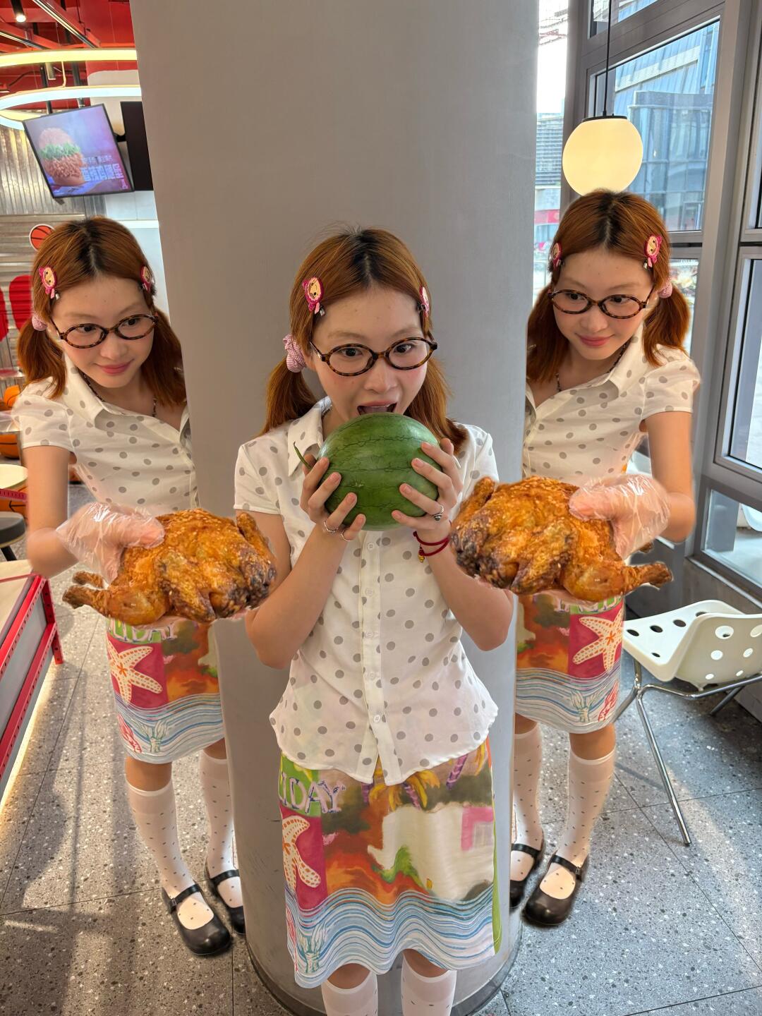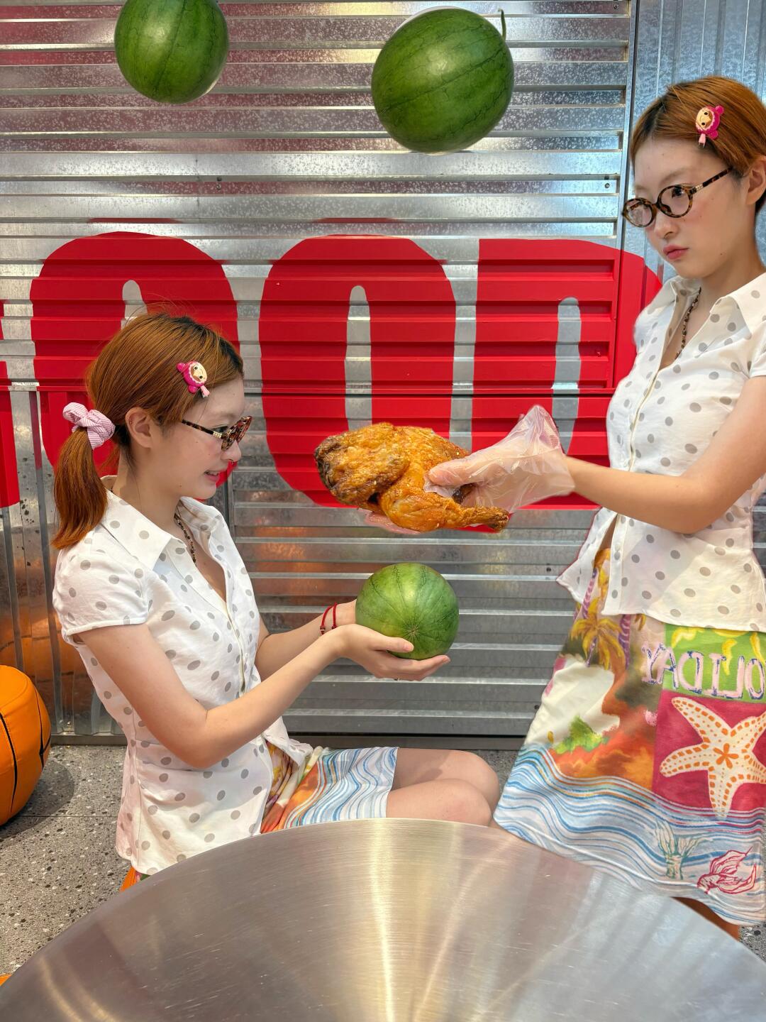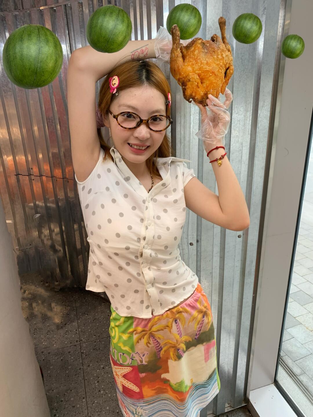 但问题来了🤔:捧着西瓜和炸鸡,怎么拍照才能表达我此刻 狂喜、满足、爽到灵魂出窍的复杂心情❓