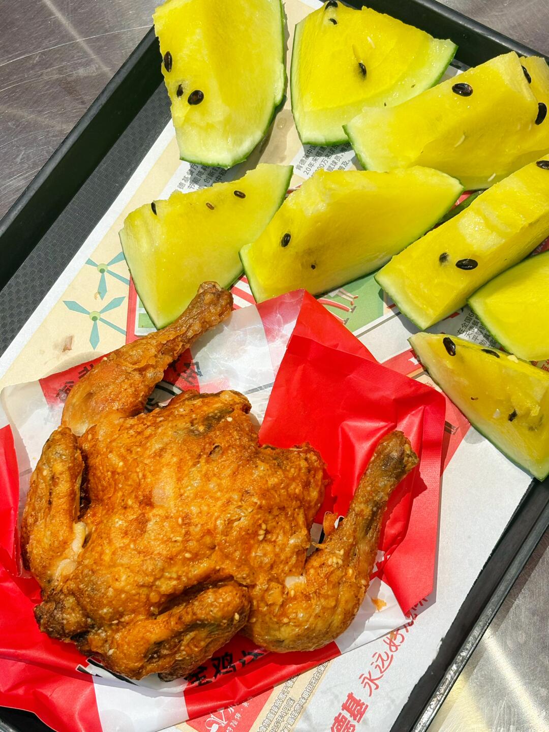 本来只想美美炫个薄脆炸全鸡,结果看到【买整鸡送整瓜】的公告!🍗 ➕ 🍉 ???