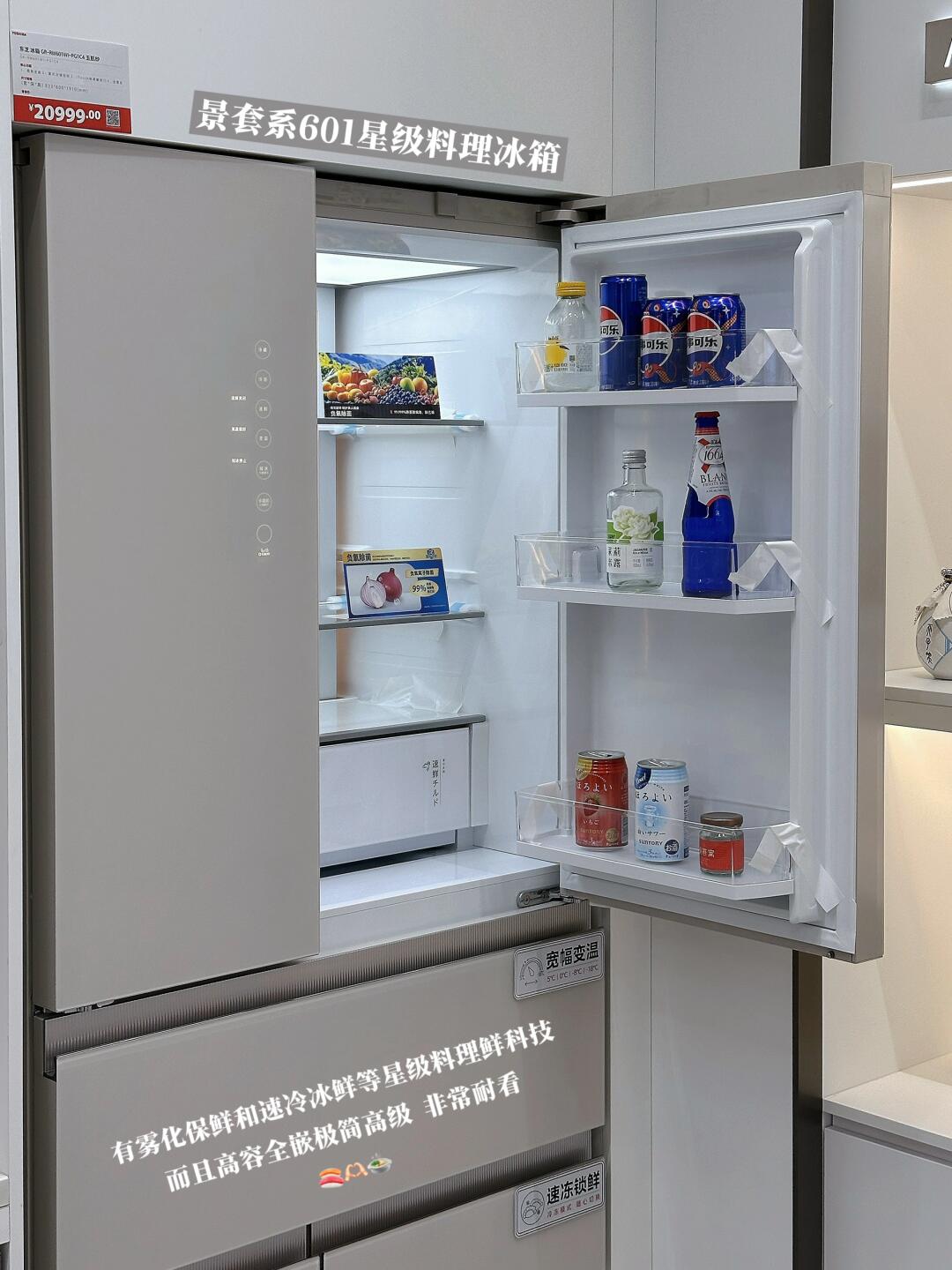 ①周末分装好鸡胸肉、牛排,往景套系601星级料理冰箱雾化保鲜抽屉一放,周三吃还嫩得飙汁,速冷冰鲜抽屉的三文鱼煎着吃很干净。玉肌纱视觉面板触感重构厨房美学,不仅有星级料理鲜科技,高容全嵌极简高级,兼具功能与颜值🧊