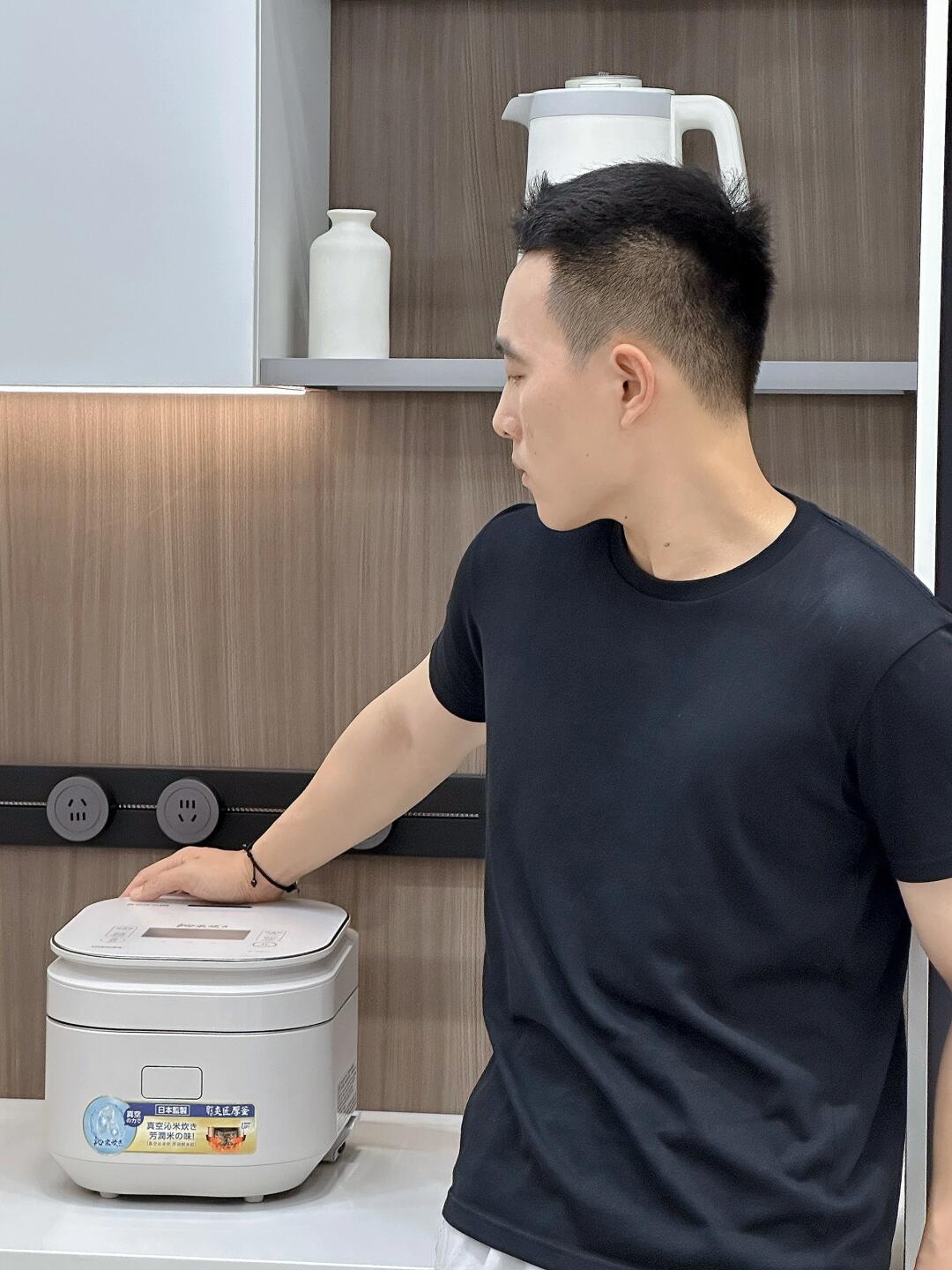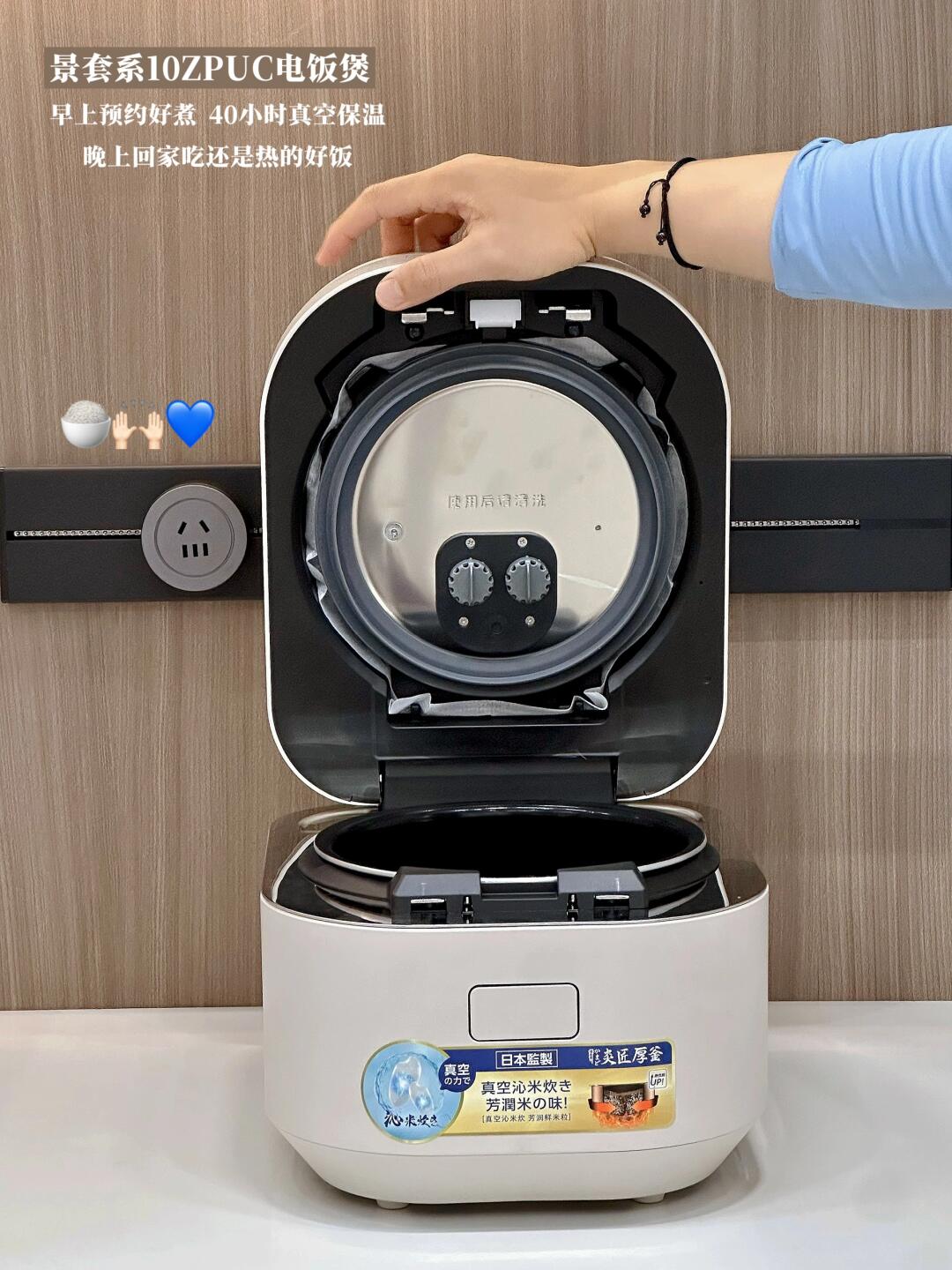 ③吃饭不用提前泡米,在景套系10ZPUC电饭煲预约早上煮,40小时真空保温,晚上还能吃上热乎好饭,加压煮的糙米软硬刚好,配着冰箱的蔬菜,5分钟搞定减脂餐🪺