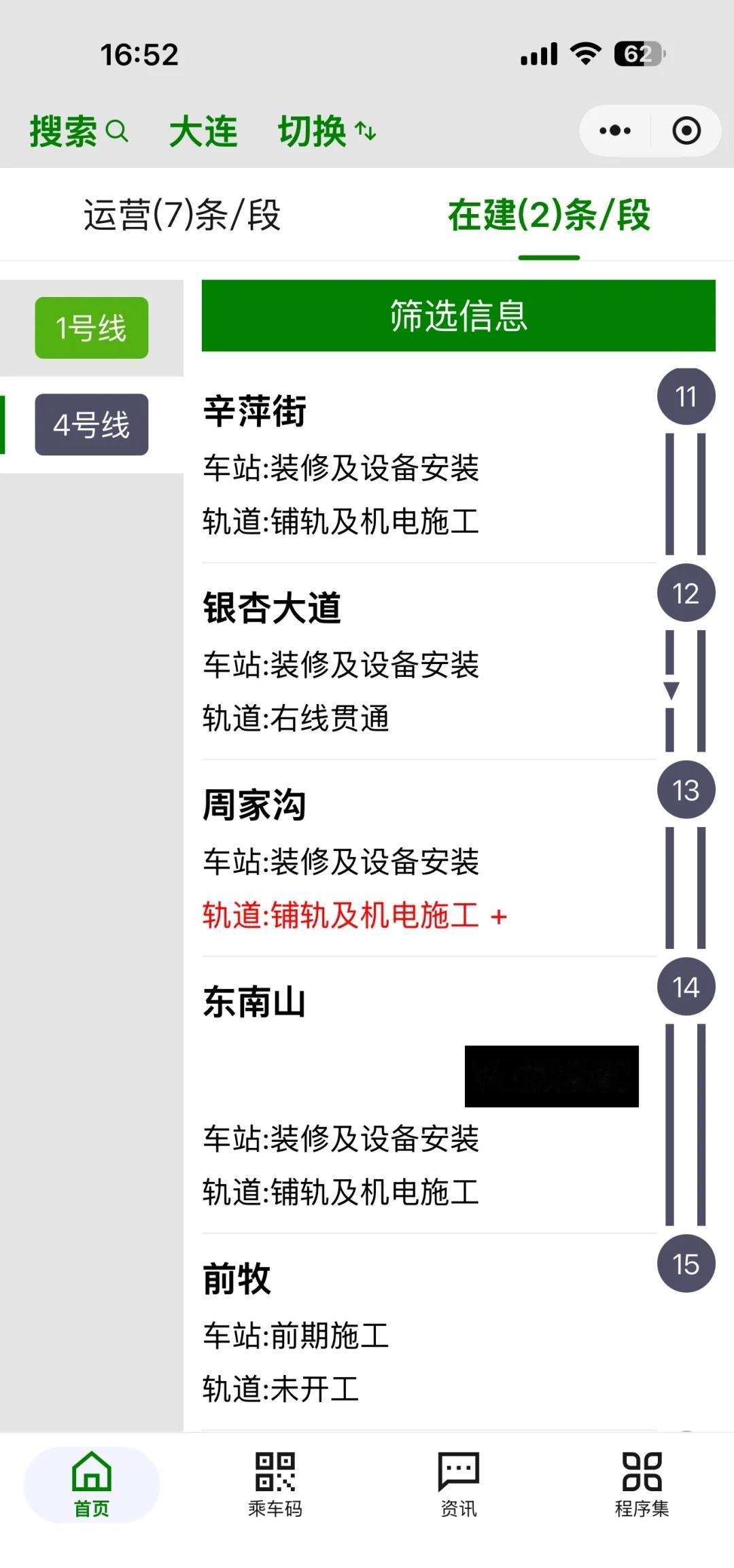 大连地铁4号线 27年通车没什么问题吧? 营城子 幸福村已经确定缓建,剩下的一共就十五站。西边收尾东边已全部完工,剩下泡崖周边的几站,部分也已经开挖大连 大连同城 轨道交通