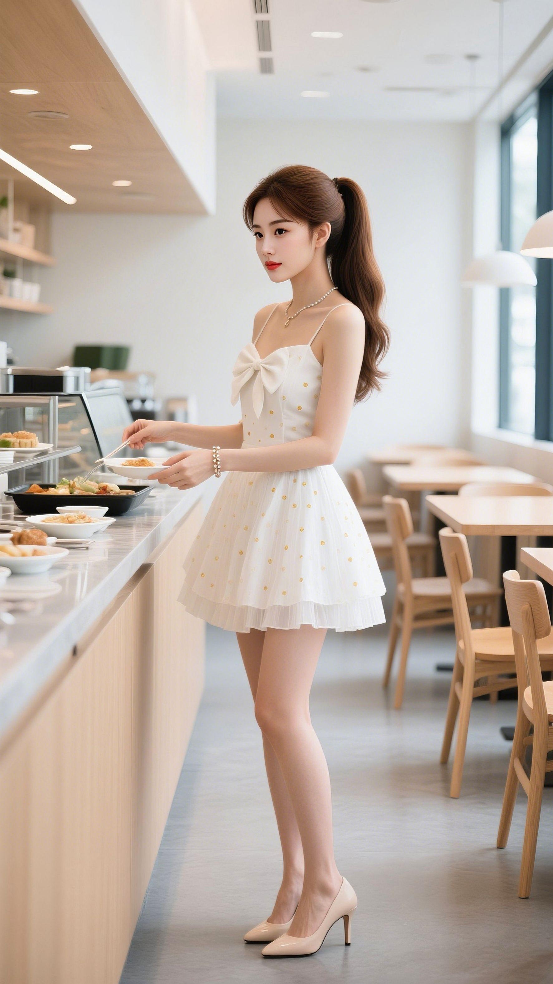 “红裙配早餐店,这氛围是不是有点‘又甜又飒’?” ai