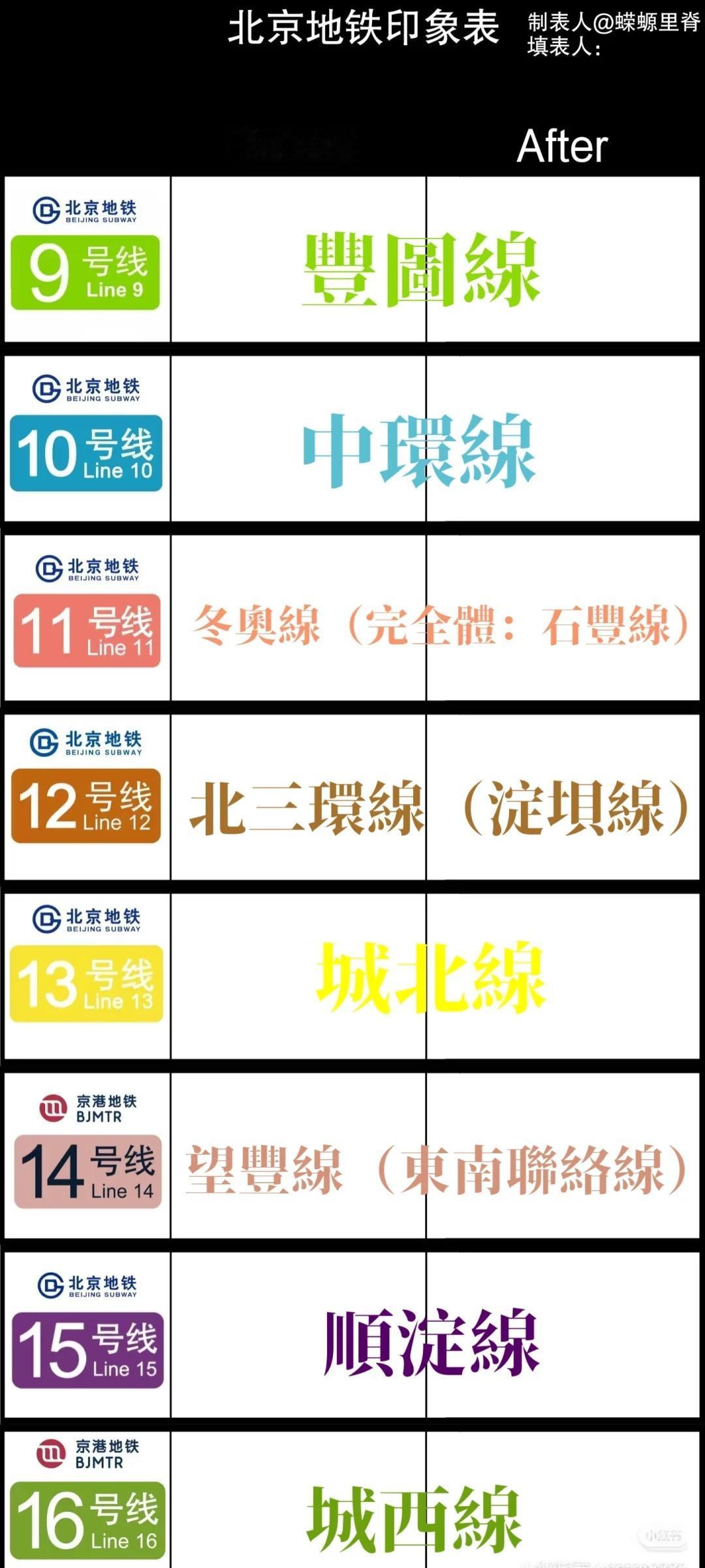 假如给北京地铁数字线路起文字名 像港铁一样 给北京地铁数字线路起文字名 地铁 轨道交通 北京