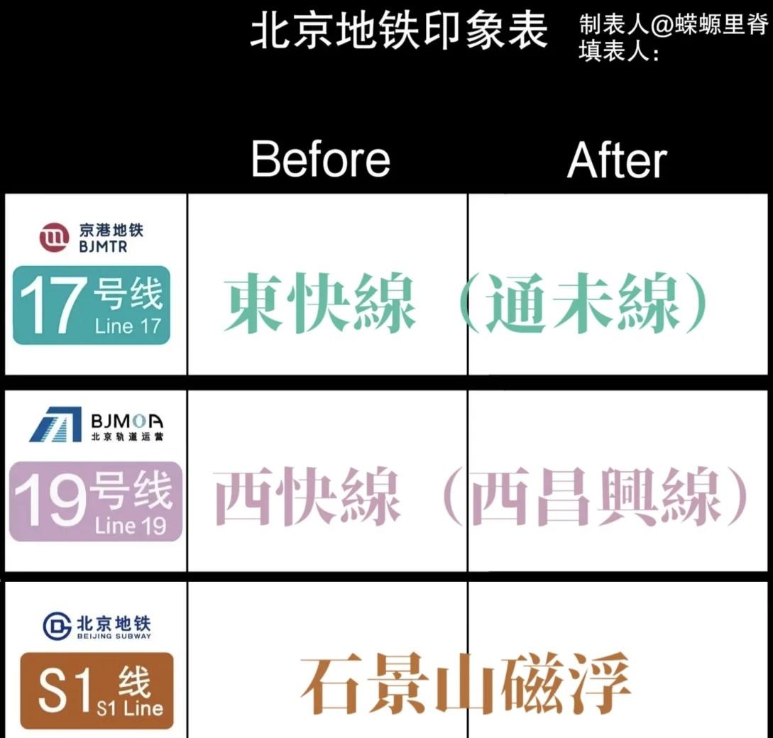 假如给北京地铁数字线路起文字名 像港铁一样给北京地铁数字线路起文字名 地铁轨