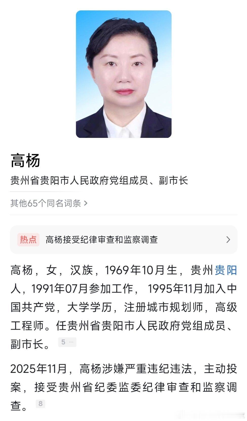 贵州省贵阳市政府党组成员、副市长高杨涉嫌严重违纪违法,主动投案。热点现场