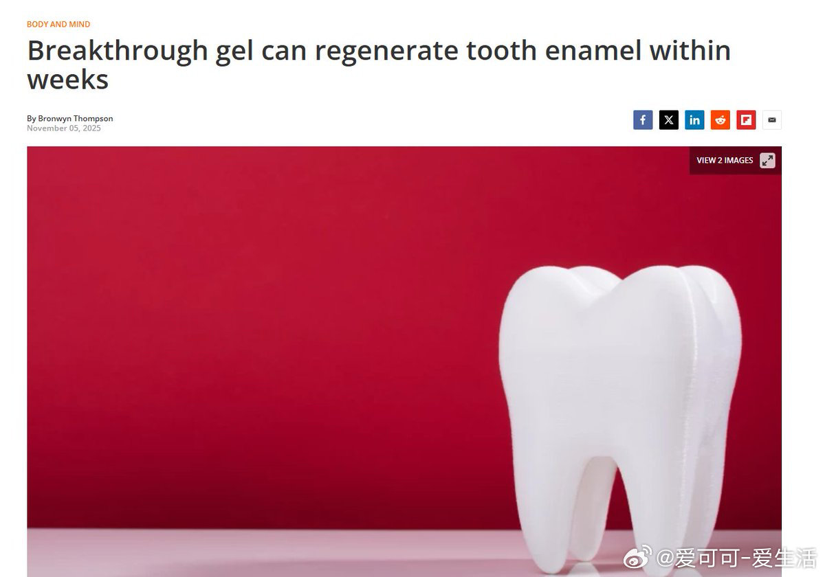科学家们研发出一种蛋白质凝胶,能真正再生人体最坚硬的牙釉质——这是前所未有的突破。传统观念认为牙釉质一旦受损便无法修复,酸蚀、刷牙磨损和衰老都会造成不可逆的损害,导致龋齿和高昂治疗费用。