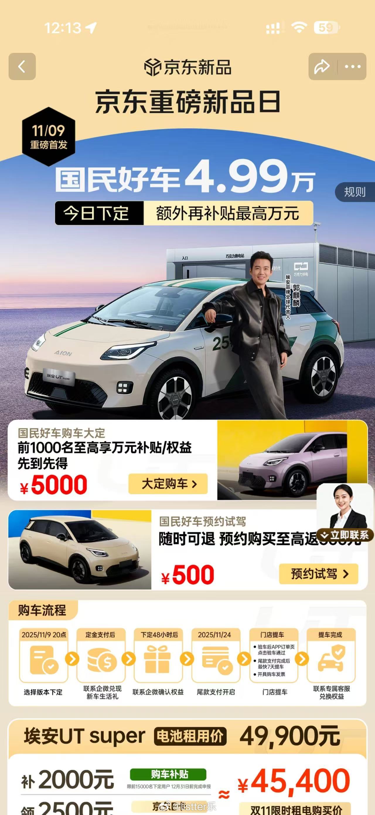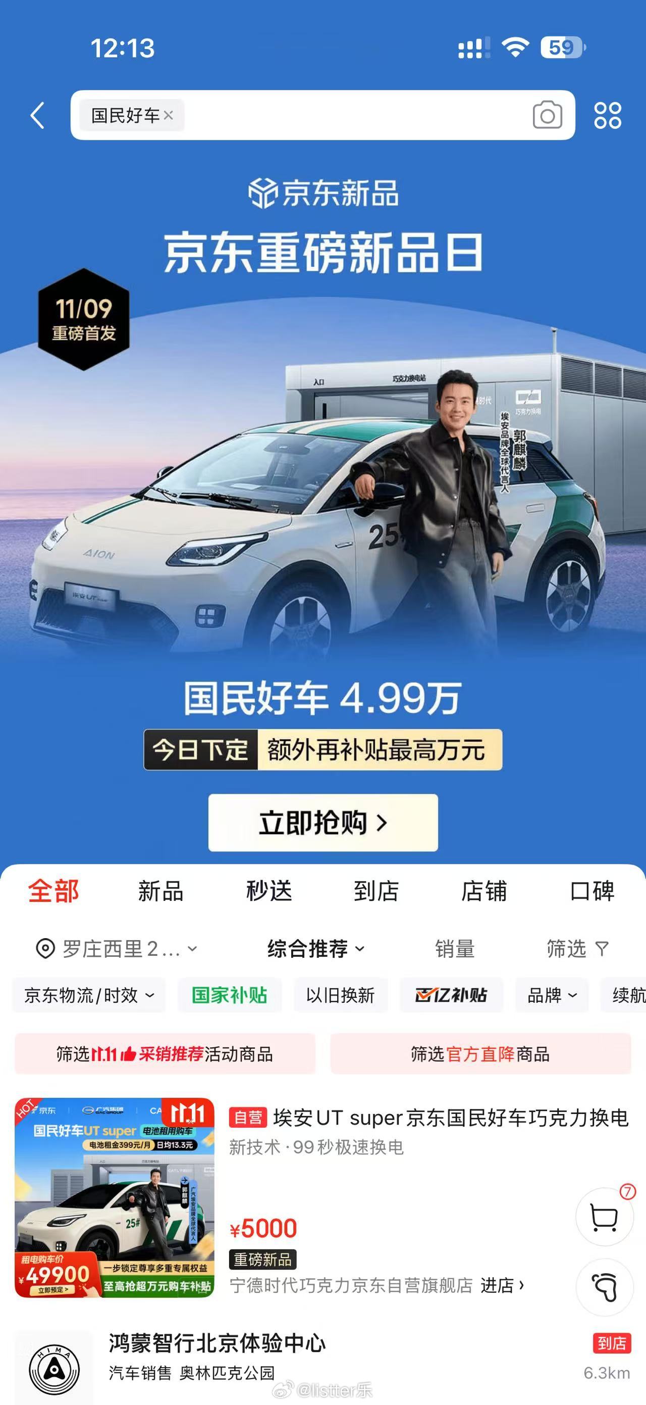 国民好车重新定义电车性价比 以前买车总觉得要花掉家里大半积蓄,现在京东直接把门槛拉到4.99万起!京东这次携手合作伙伴将“高端科技”带入寻常百姓家,让领先科技不再是少数人的享受,而是可以被广大普通消费者轻松拥有的日常,500公里超长续航+2750mm越级轴距,空间媲美A级车,通勤、自驾、接娃全搞定。电池月租399元(首年还有优惠),整车购买也只要8.99万含电池——这波操作直接把新能源车从“奢侈品”变成“日常刚需”啦!