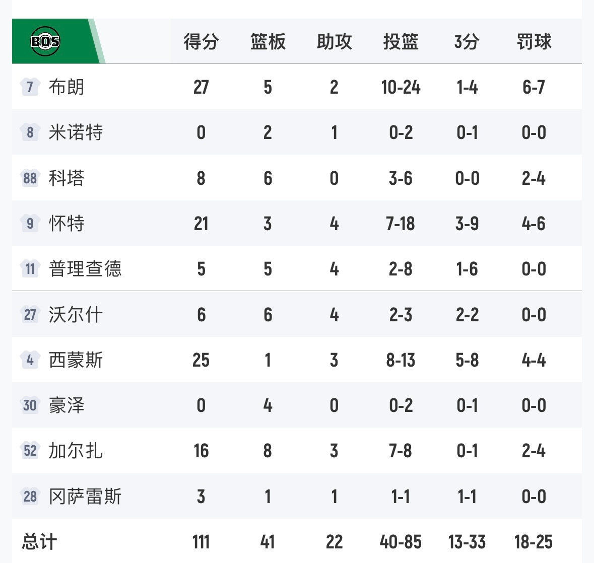 凯尔特人决战时刻击败魔术,布朗27分,怀特21分,替补小西蒙斯25分。班凯罗28分,小瓦20分,贝恩9分5板6助攻。