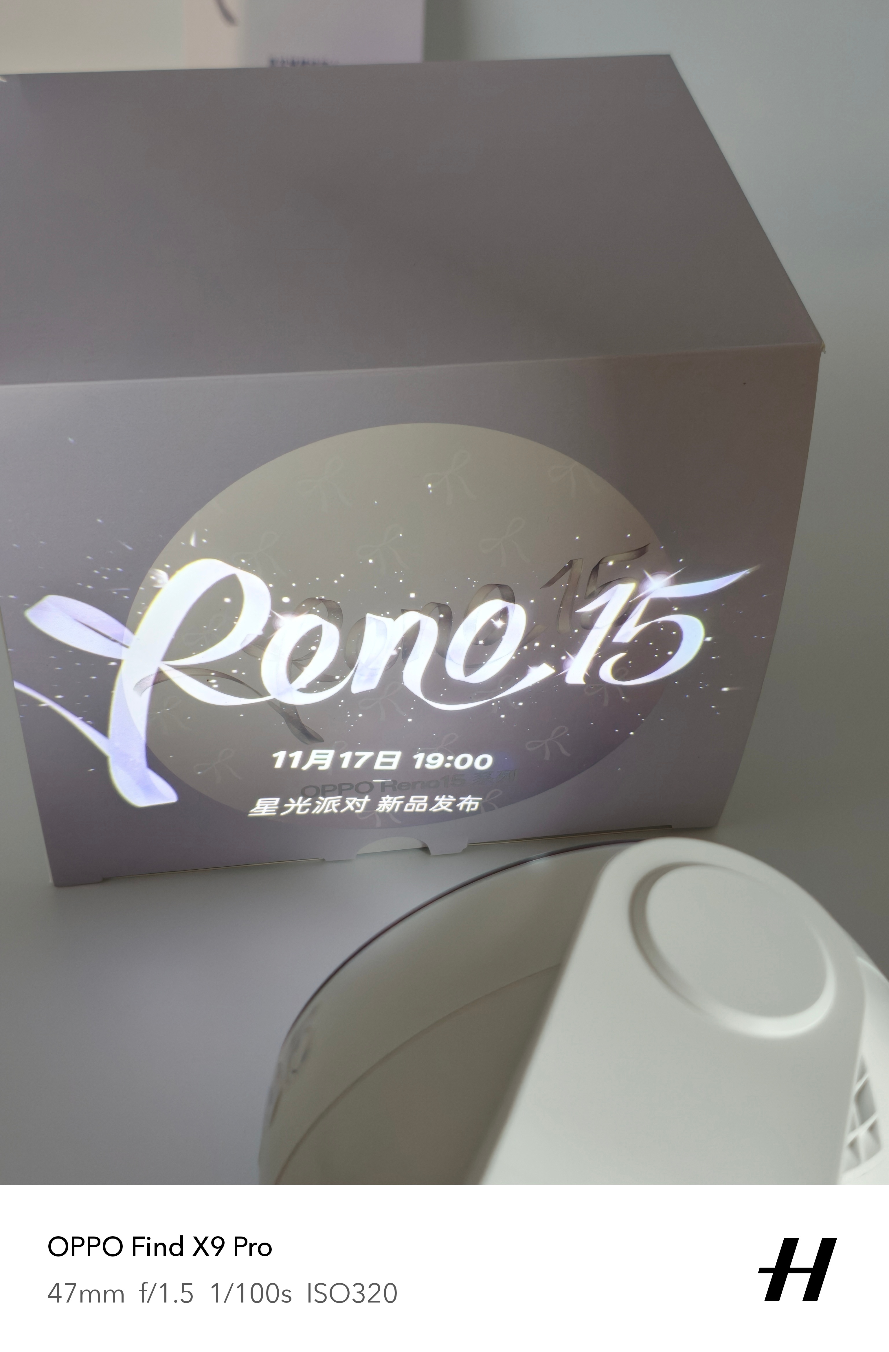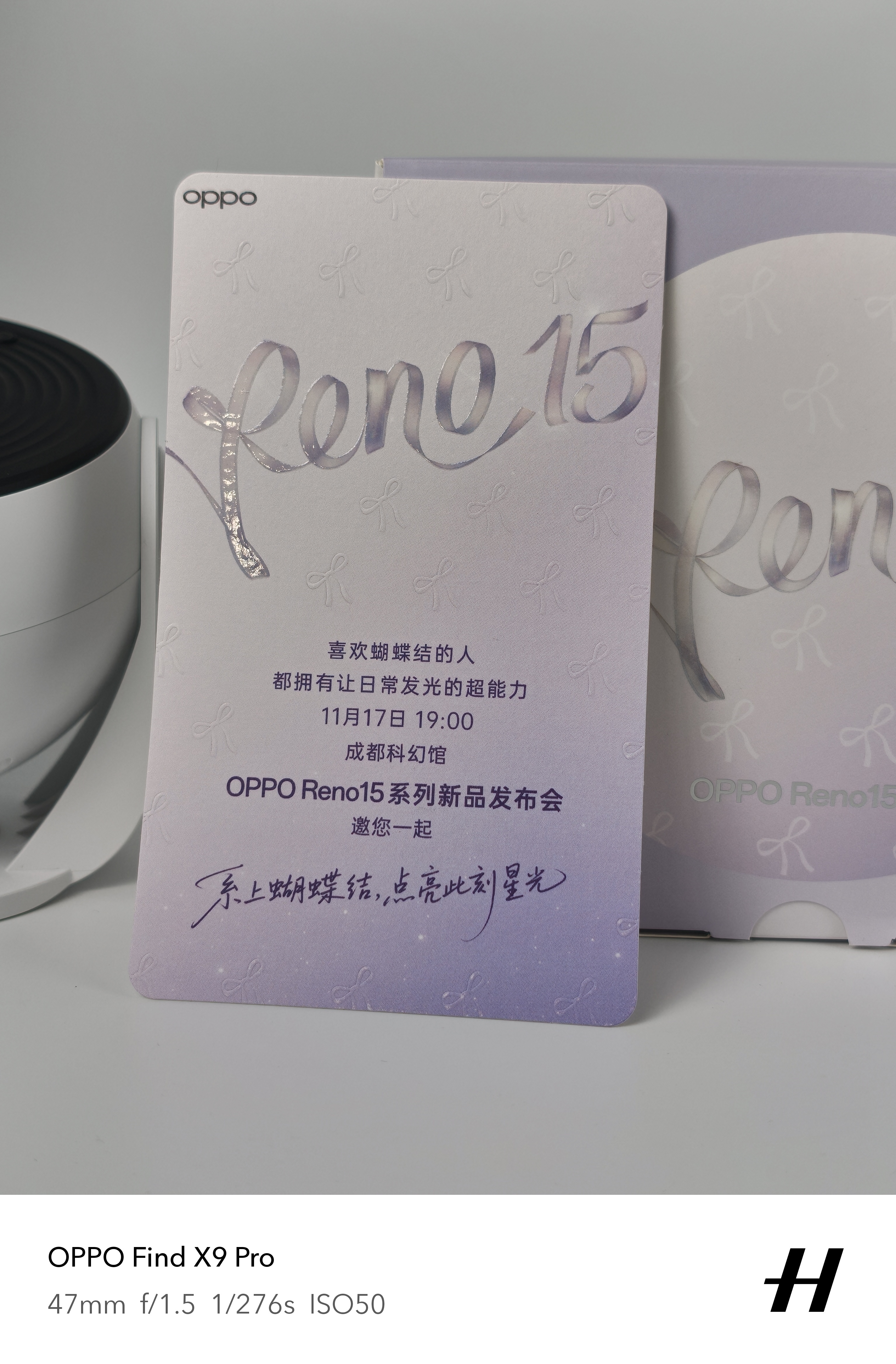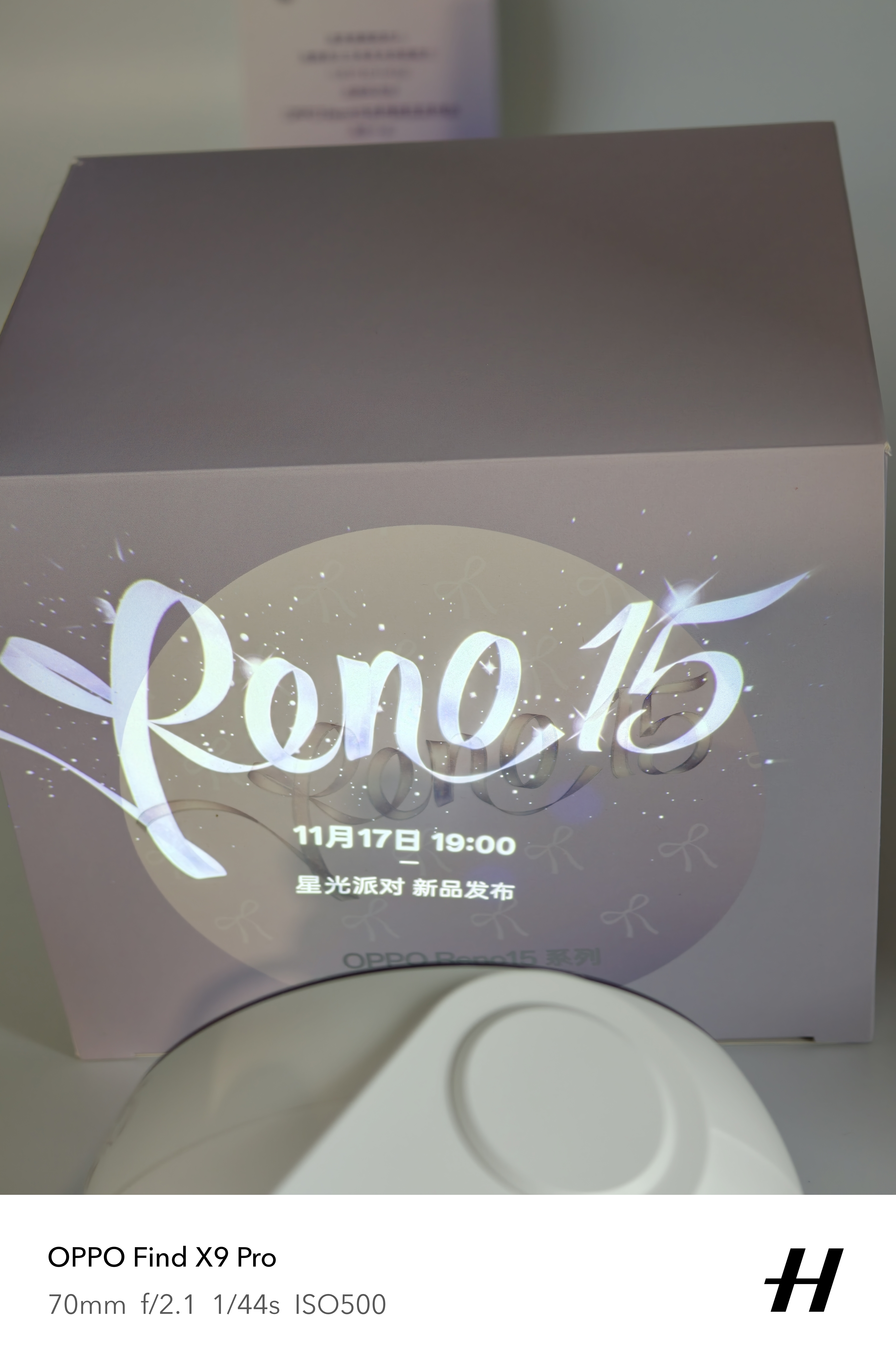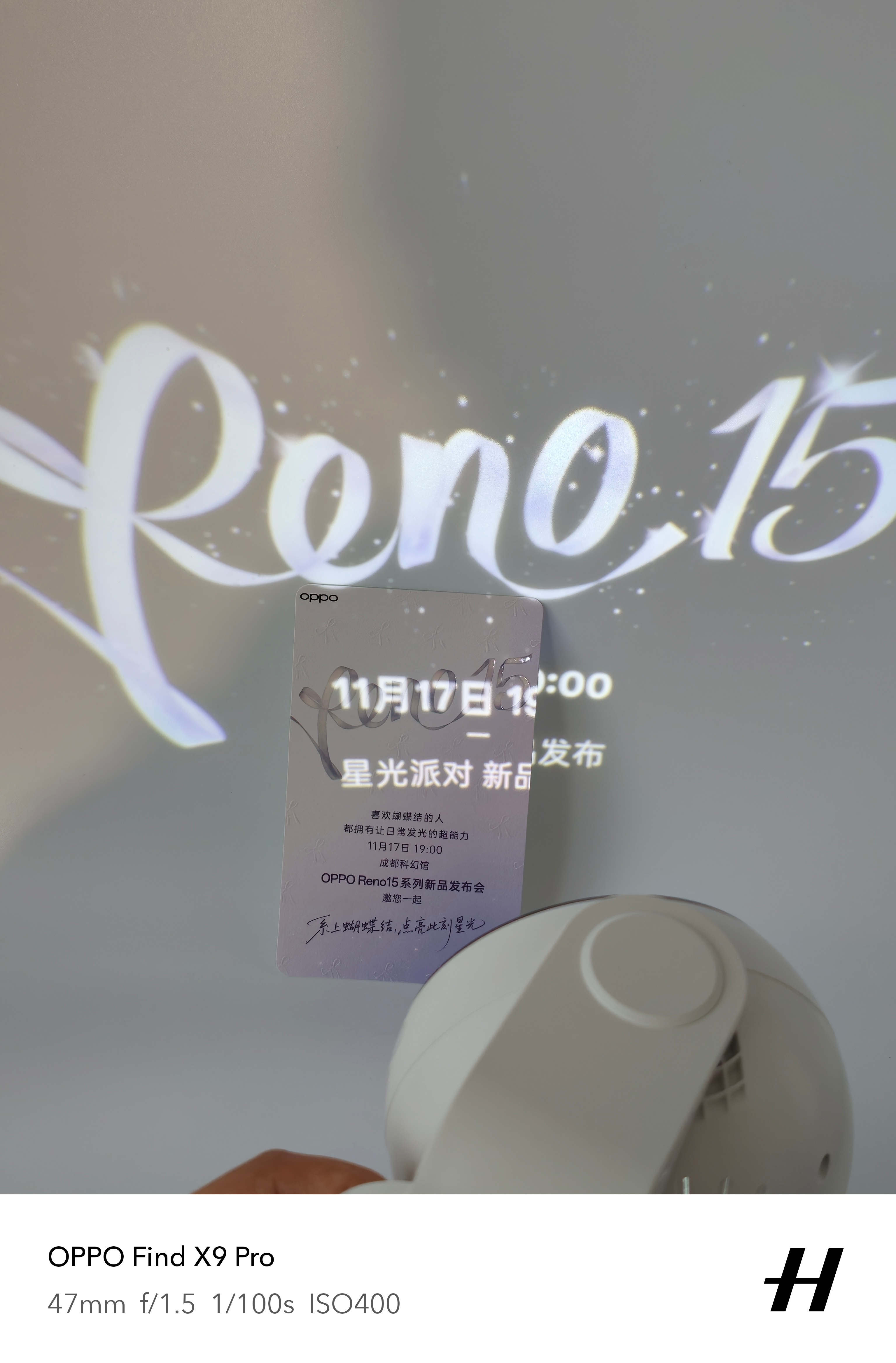 收到了宋雨琦同款OPPOReno15发布会邀请函,太潮太有创意了,投影形式展示了产品发布时间和地点,11月17日19:00成都科幻馆发布。