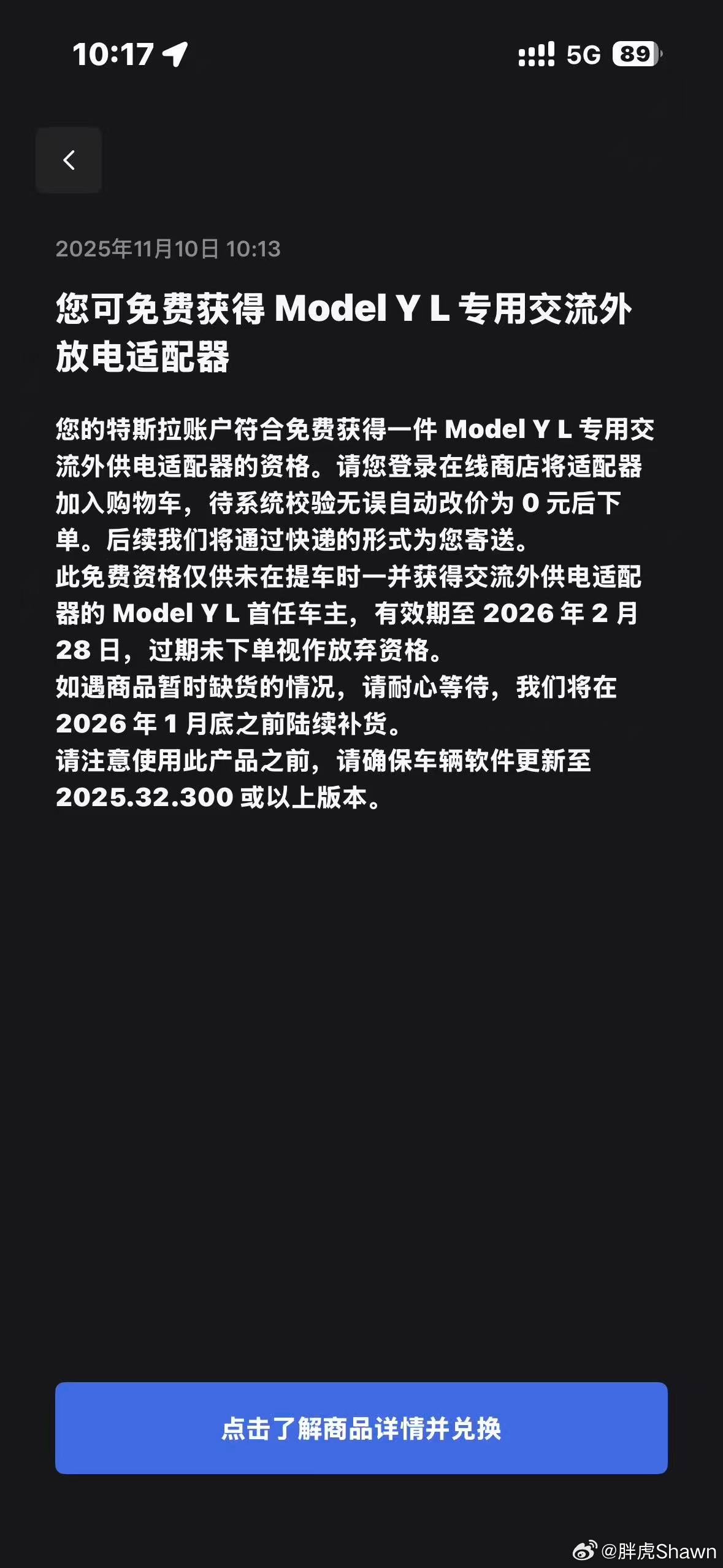 这波特斯拉有点厚道了啊!!!还没领的兄弟们可以去APP看看了[doge]