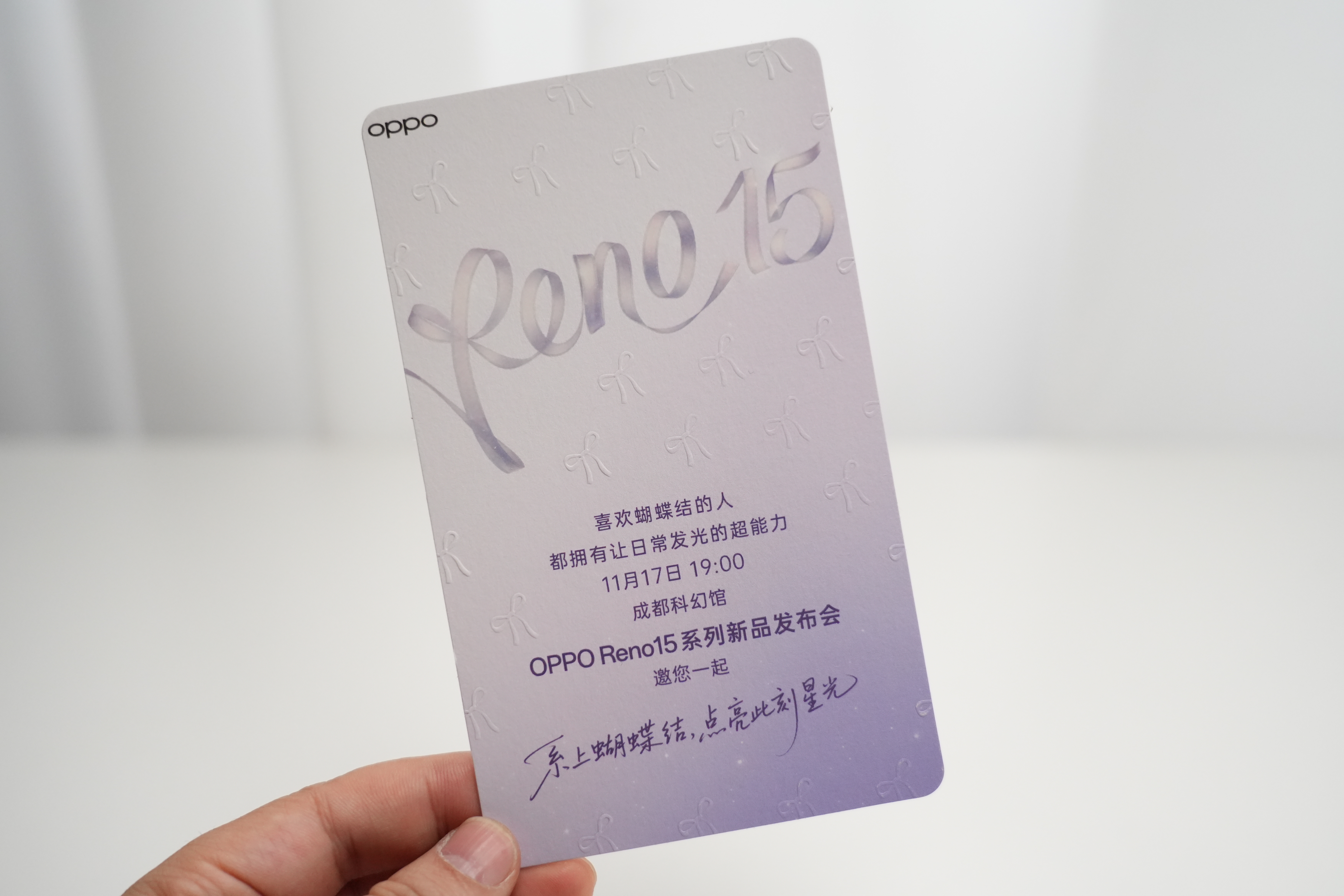 收到宋雨琦同款OPPOReno15邀请函了,这个邀请函非常有创意,星空灯投影出新品信息,并且还融入了蝴蝶结元素,引领时尚潮流。看样子OPPO Reno15新品「系上蝴蝶结,点亮此刻星光」的外观主张。