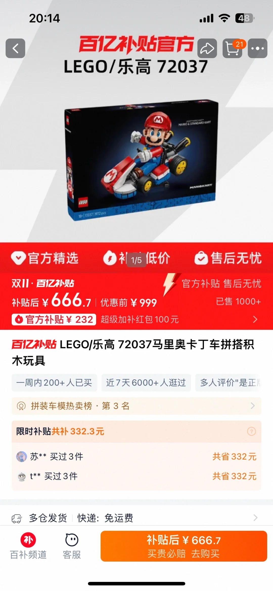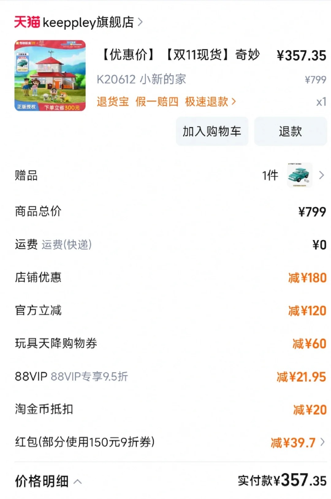 主要是这能怪我吗?这要怪11月10日-11月11日,上淘宝双11巅峰冲刺48小时!全年真优惠,错过等一年!谁让他官方立减!8.5折起叠加9折消费券,天猫双11才是真优惠!11月12日-14日,天猫双11再补3天!这可是最巅峰的冲刺活动了!现在买两个乐高,省下来的钱还能再买一个新的,这种补贴力度让谁谁能不心动!上淘宝官方双11全年真优惠