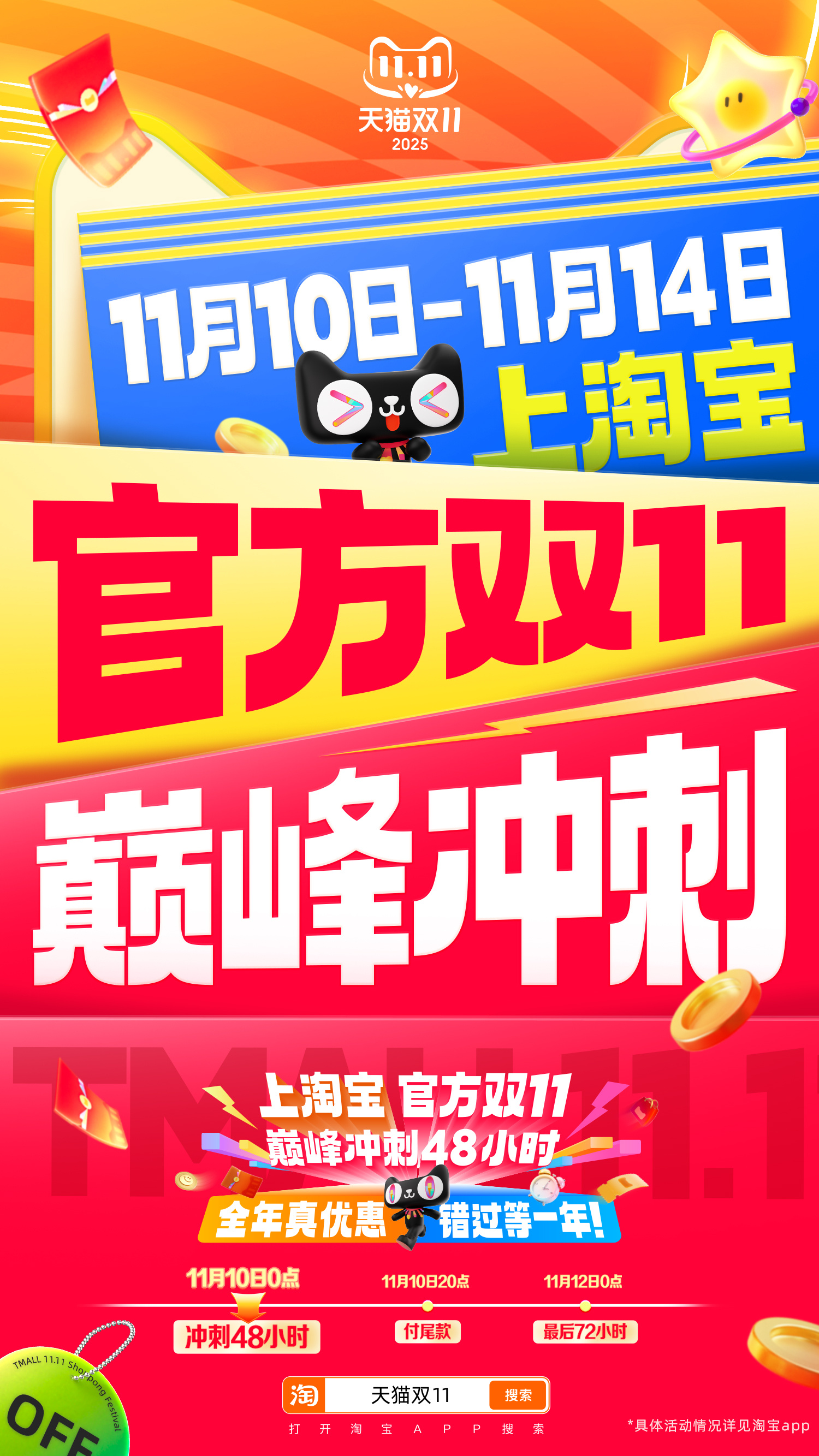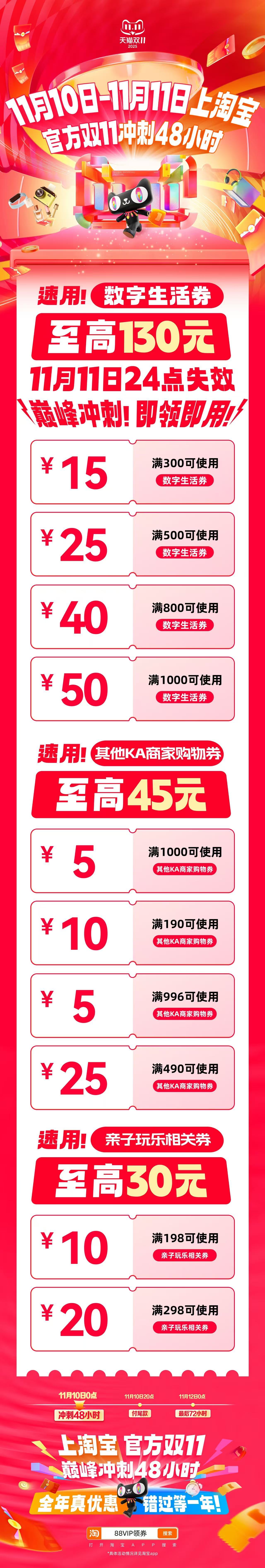 而且这次的上淘宝官方双11巅峰冲刺还有其他优惠,什么立冬服饰、家享、视频,运动酒店降温补贴,统统低至5折!