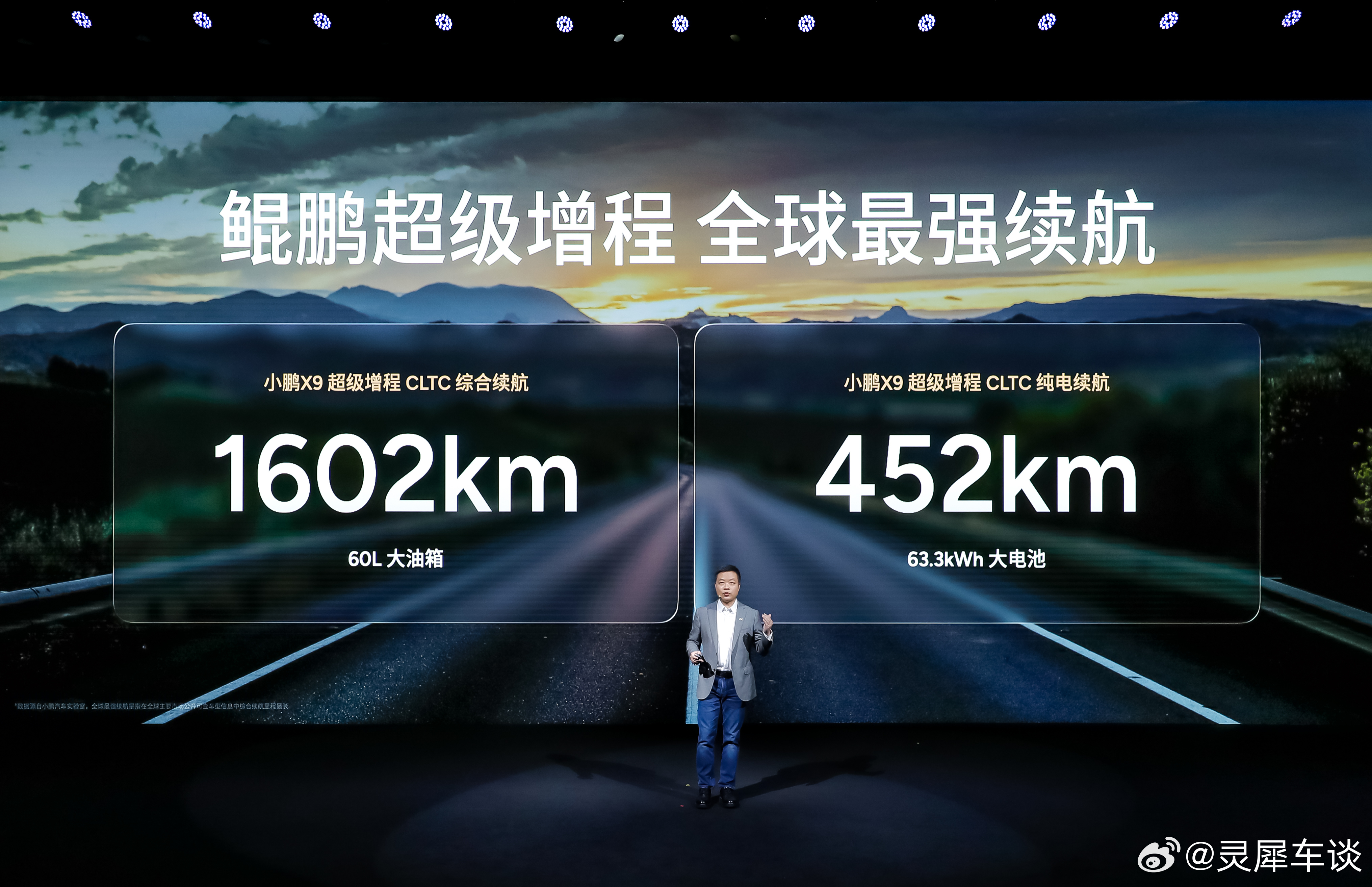 小鹏X9搭载鲲鹏超级增程技术,实现了“一周一充,长途无忧”的终极目标。其CLTC纯电续航高达452公里,足以覆盖绝大多数城市通勤场景;CLTC综合续航更是达到了惊人的1602公里,是全球续航最长的大七座车型,足以支持从广州到上海的长途旅行,让用户远行探亲再无后顾之忧。