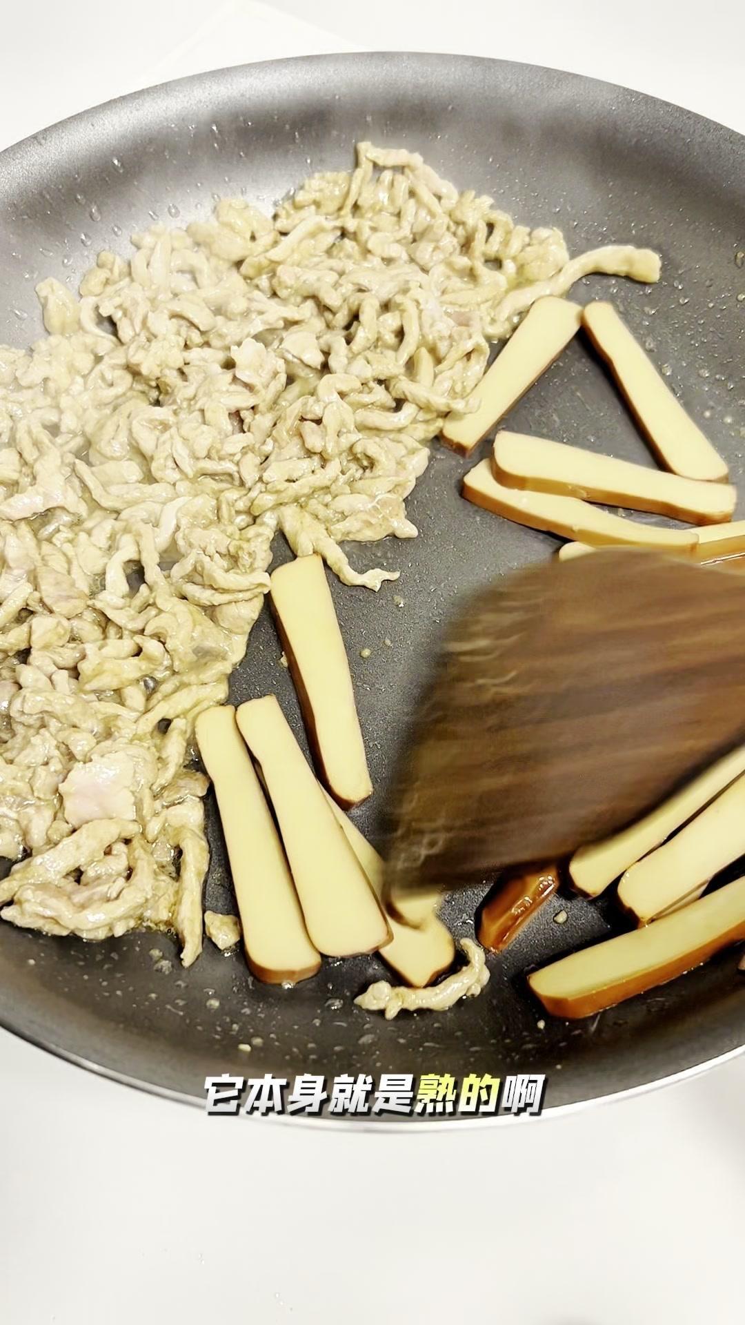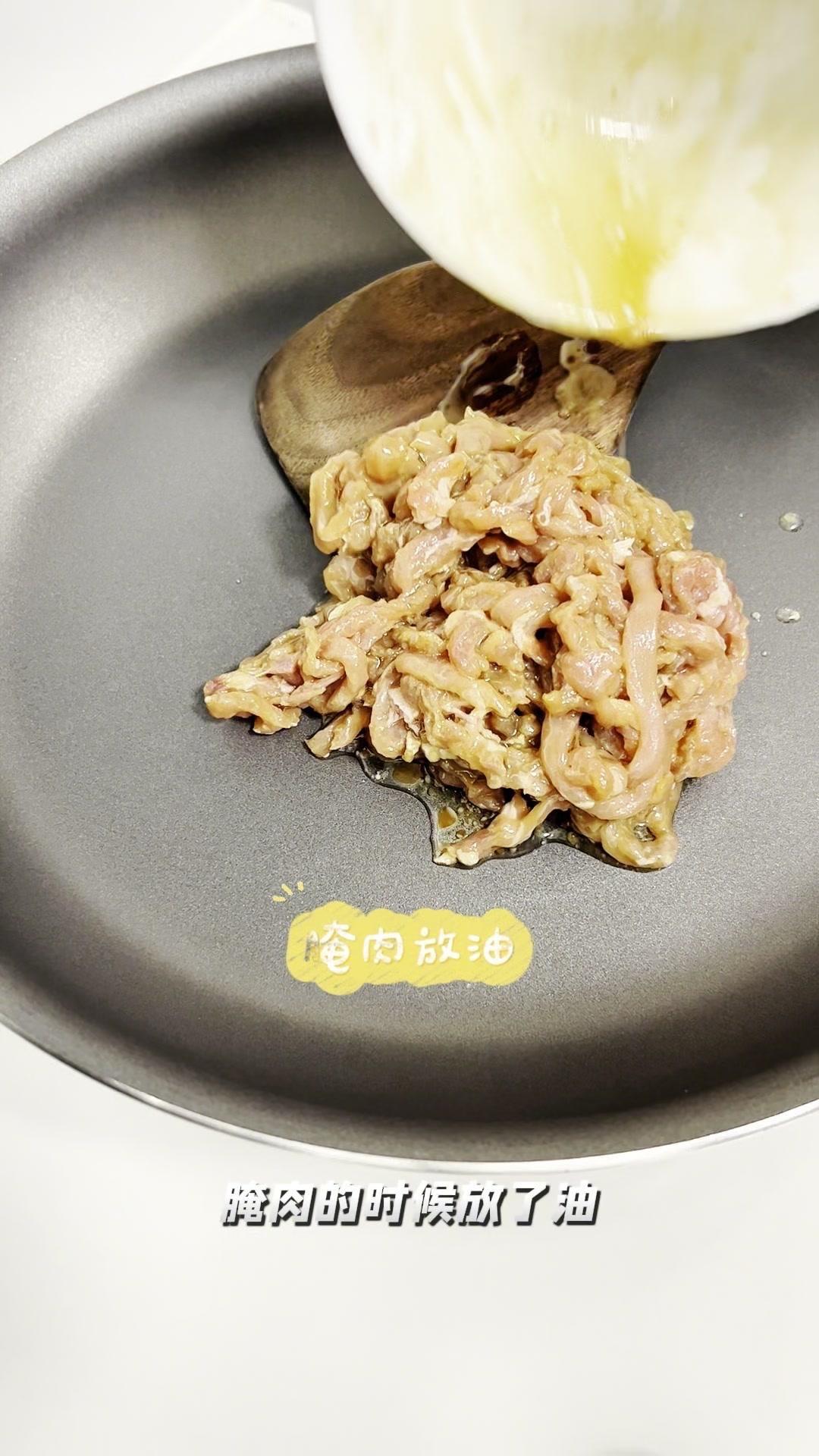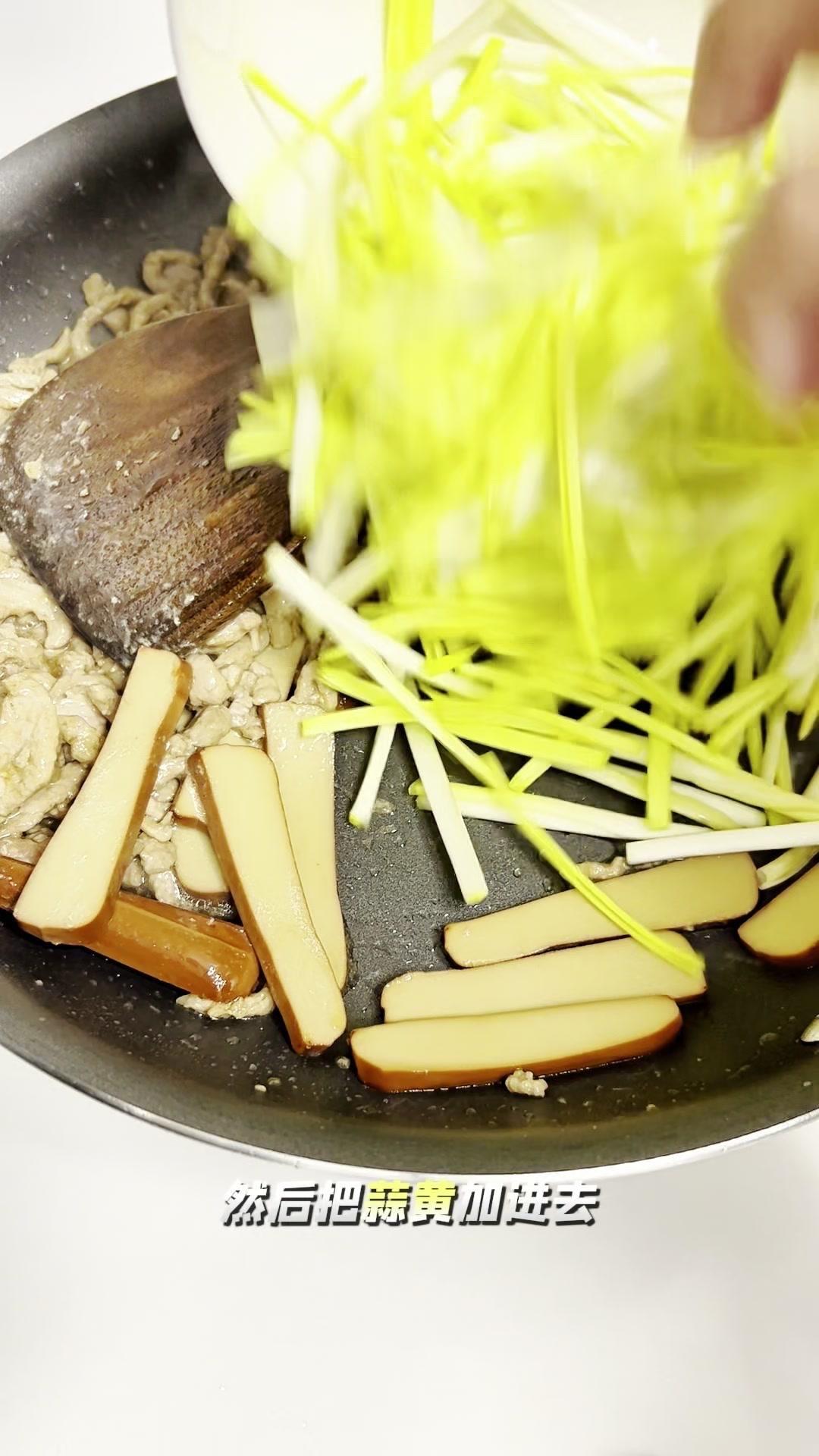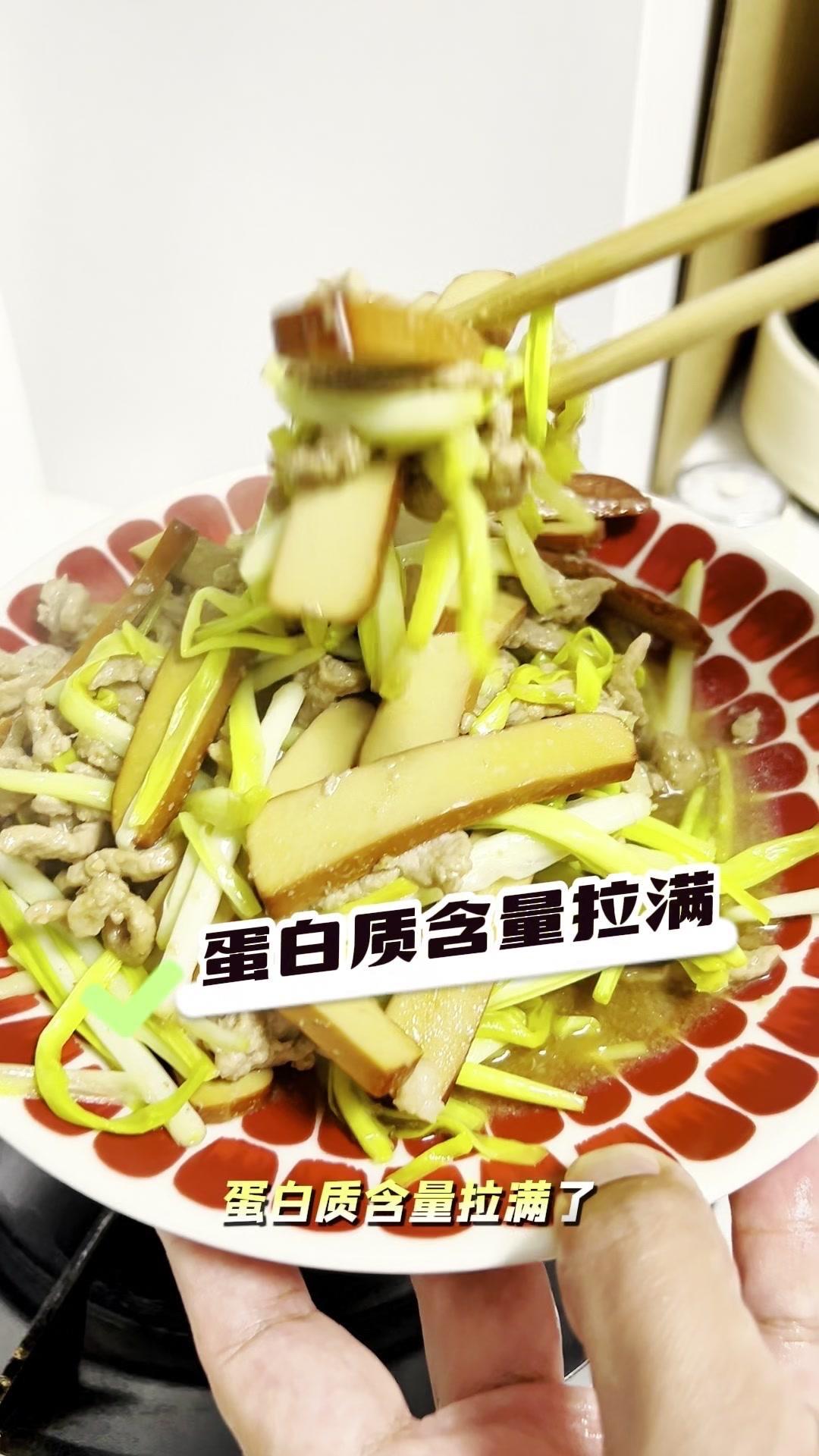 🍳今天这道蒜黄肉丝炒鸡蛋干,简直是冬天减肥党的救星!肉丝嫩到爆汁,鸡蛋干Q弹入味,蒜黄脆爽解腻,蛋白质和膳食纤维直接拉满,好吃还没负担~ 先处理肉丝:选瘦肉多的,放香醋、生抽、料酒、香油和一小勺淀粉,抓匀后倒点油封上,这样炒出来肉嫩不柴,口感超棒! 炒蒜黄有个小窍门:切好后撒点盐抓匀,下锅就不会出水,保持脆爽口感。腌肉时已经放了油,炒菜时就不用额外加油,直接把肉丝炒到变色。 接着加提前准备好的鸡蛋干,它本身是熟的,简单翻炒一下就行。最后放入蒜黄,开大火快炒,蒜香瞬间扑鼻,这样炒出来的蒜黄才脆,软塌塌的就不好吃啦~ 这道菜蛋白质超高,肉丝有动物蛋白和铁元素,鸡蛋干是优质蛋白和钙,蒜黄还有高膳食纤维,通便效果好,冬天想吃肉又怕胖的姐妹,赶紧试试!
