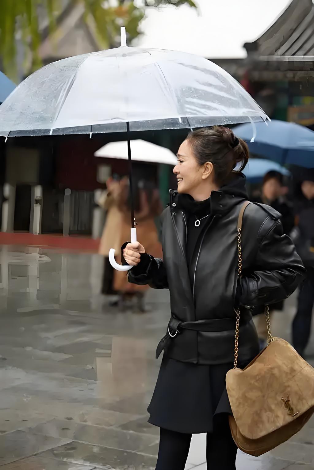 2025年11月8日,60岁的巩俐现身北京北海公园,一身酷飒黑色皮衣搭配透明雨伞,漫步雨中尽显文艺范。她手握冰糖葫芦,细品老北京酸奶,与友人谈笑风生,松弛感拉满。褪去影后光环,这位“巩皇”以最本真的姿态,诠释了何为“偷得浮生半日闲”。巩俐写真照 巩俐古装照 巩俐街拍 巩俐穿搭