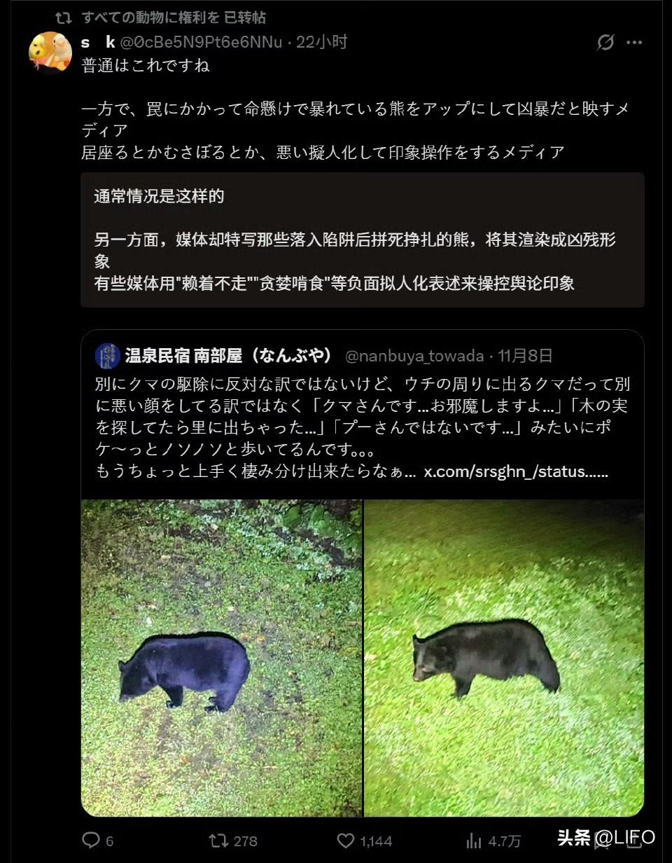 日本的动物保护组织开始呼吁“日本人应该和熊共存了”。