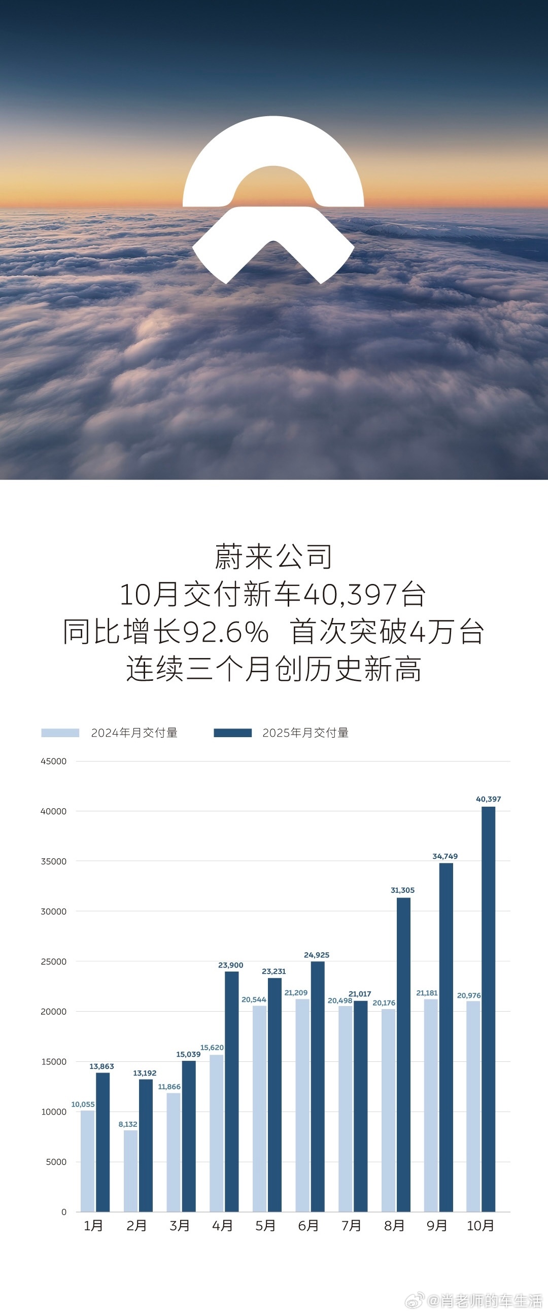 刚刚过去的10月,蔚来月销量首次破4万,达到了40397辆。随着乐道L90、全新蔚来ES8两款热销大型SUV上市,蔚来的销量吹响了冲锋号。