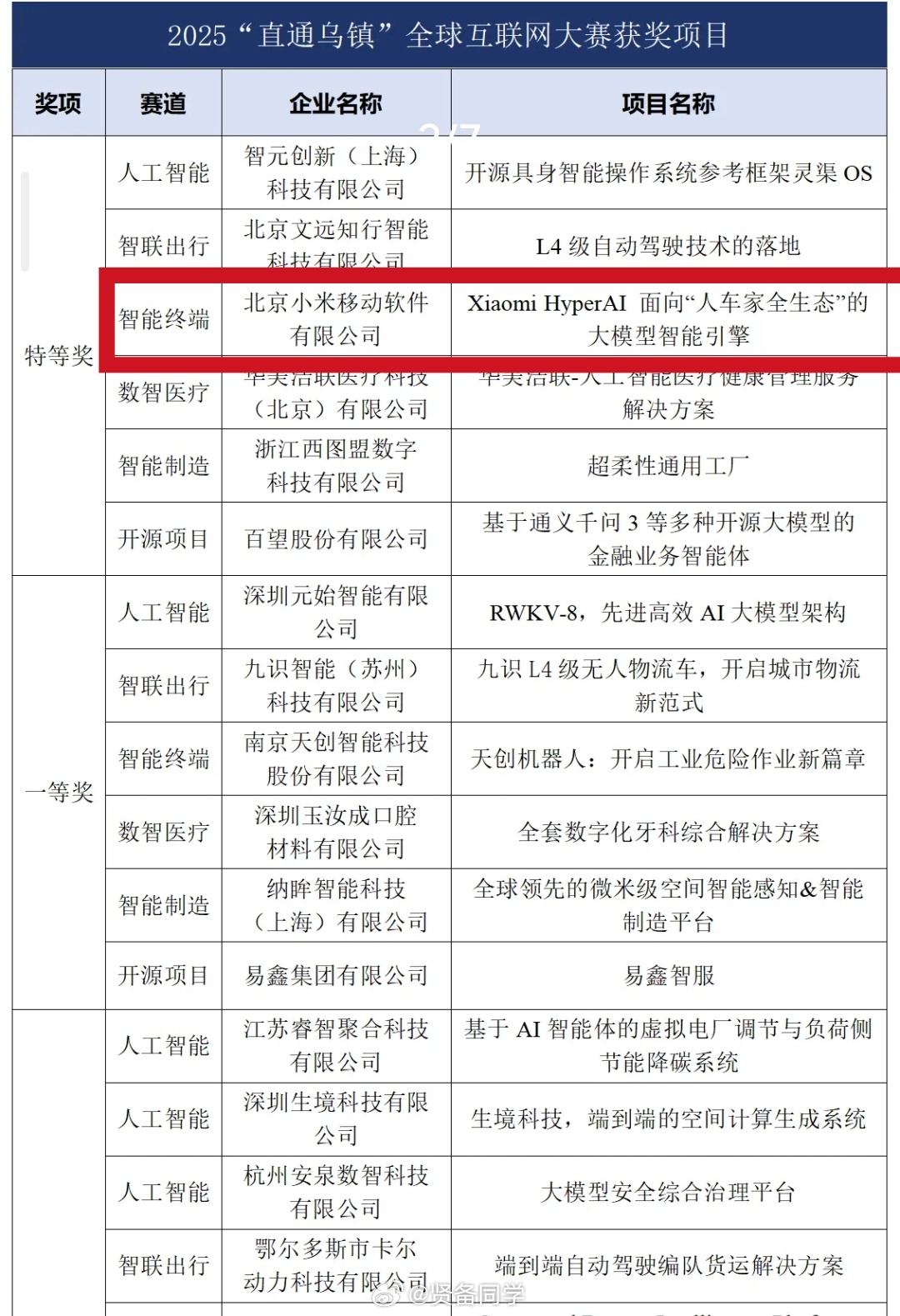 看到Xiaomi HyperAI 在智能终端领域斩获了该赛道特等奖的殊荣,从1000多个项目中角逐胜出,不得不说这一波小米还是太低调了。小米HyperAI获互联网大会特等奖