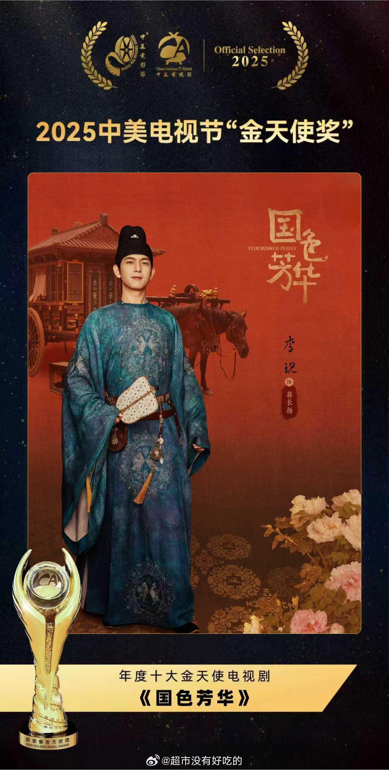 李现《去有风的地方》《国色芳华》连续2年获得24、25年第二十、二十一届中美电视