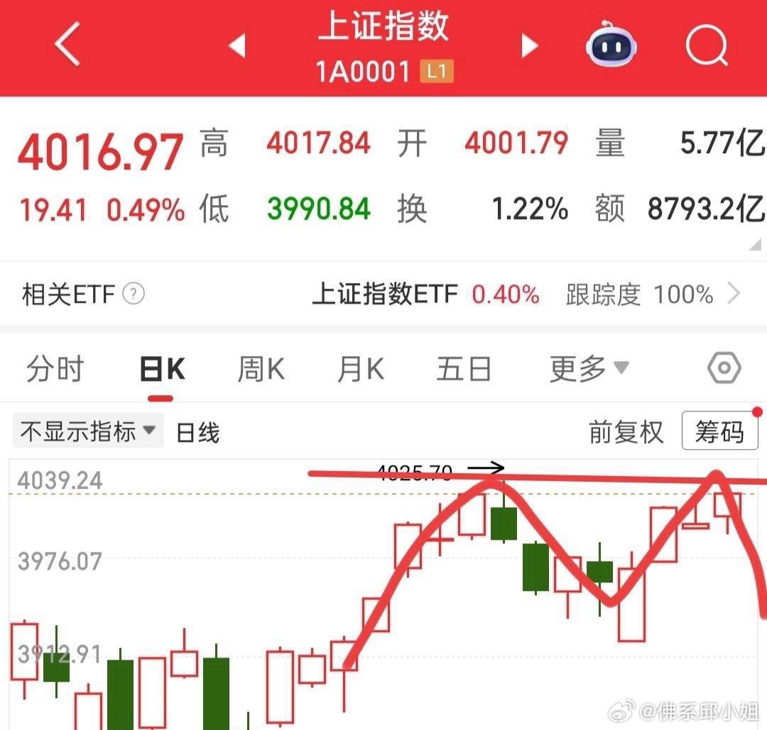 今天下午大盘选择向上变盘,打算去创新高的,不管能不能突破4025.7点,今天我认为减一些都不为过!
