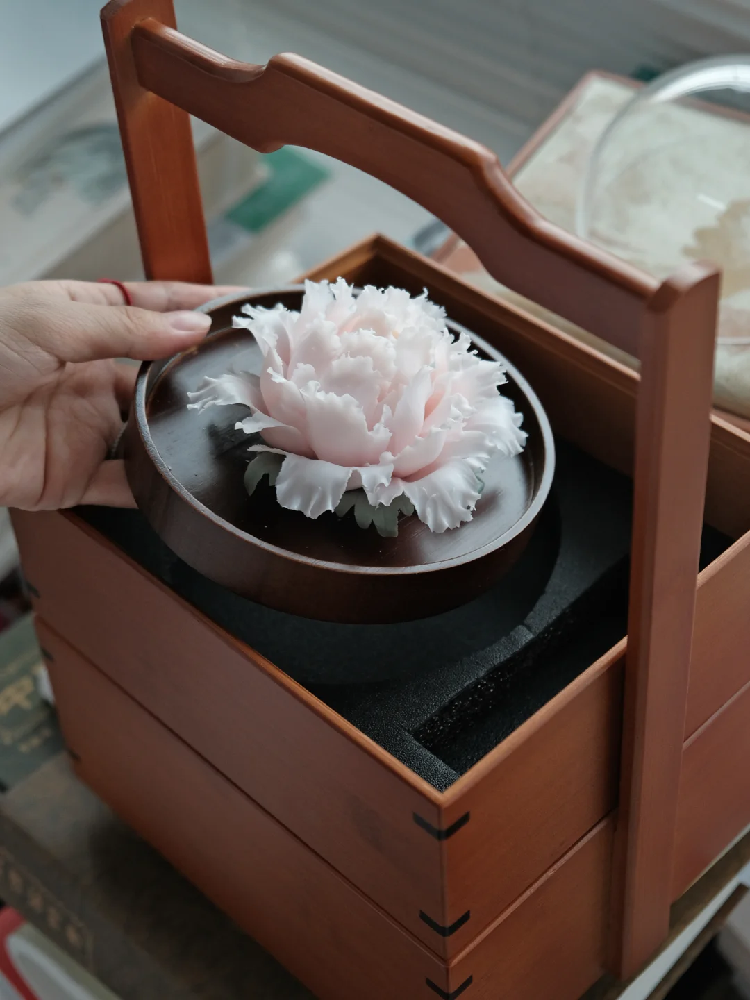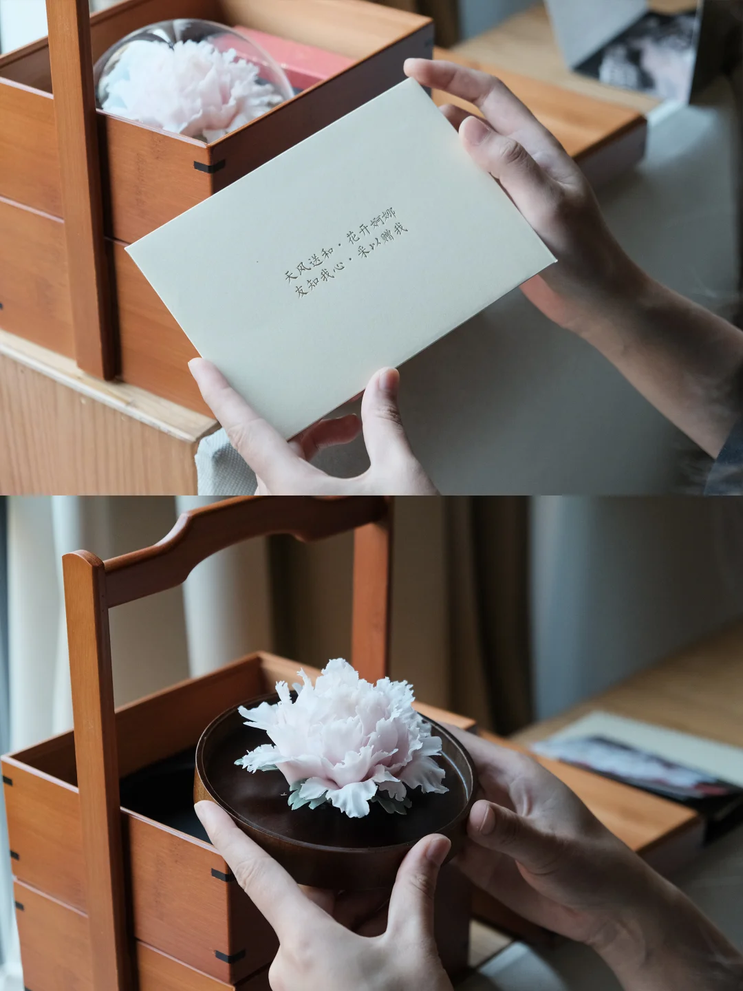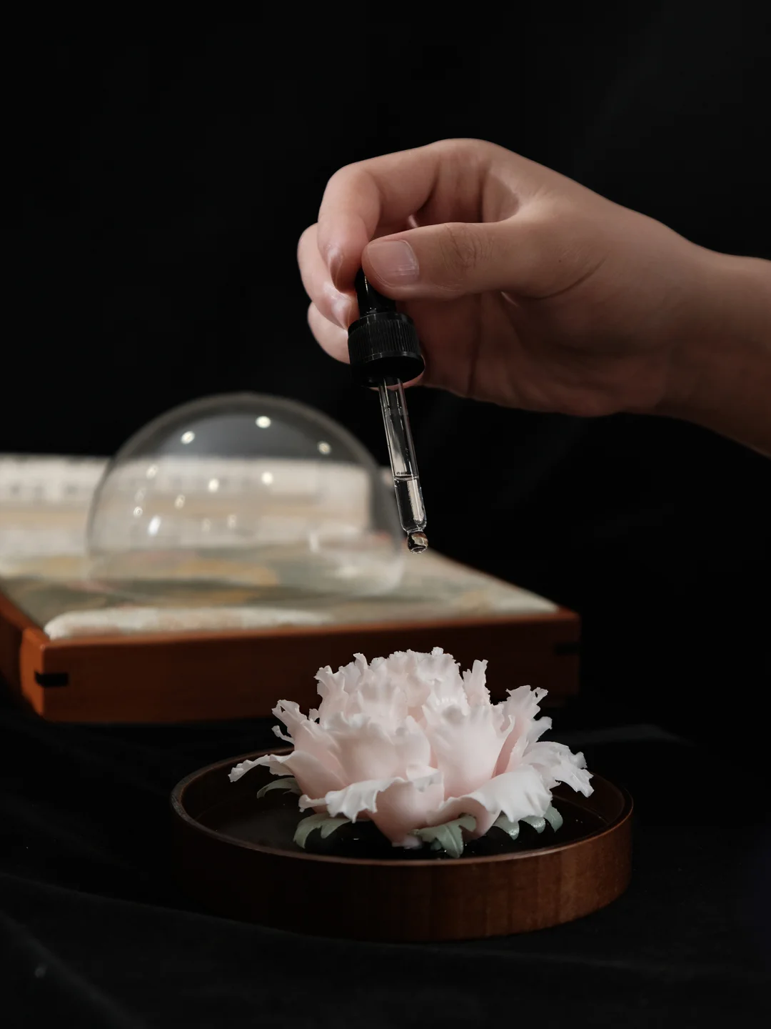 中国独有的陶瓷永生花 栩栩如生的花朵形态 不仔细看还以为是真花! 难怪在以前被外国人搬回去当奢侈品👍 来自福建的手捏瓷花记忆 每个手艺人一天也只能做3朵 成品率不到30% 是香薰也是家居增添氛围感的摆件 一滴精油入花 薄如蝉翼的花朵散发出徐徐道来的芬芳 藏着中式的精致浪漫 主调:玫瑰 中调:白丁香香根草 尾调:鸢尾花琥珀 中式的手提礼盒包装 我们还特意附赠了云南白茶 送人代表心意和态度