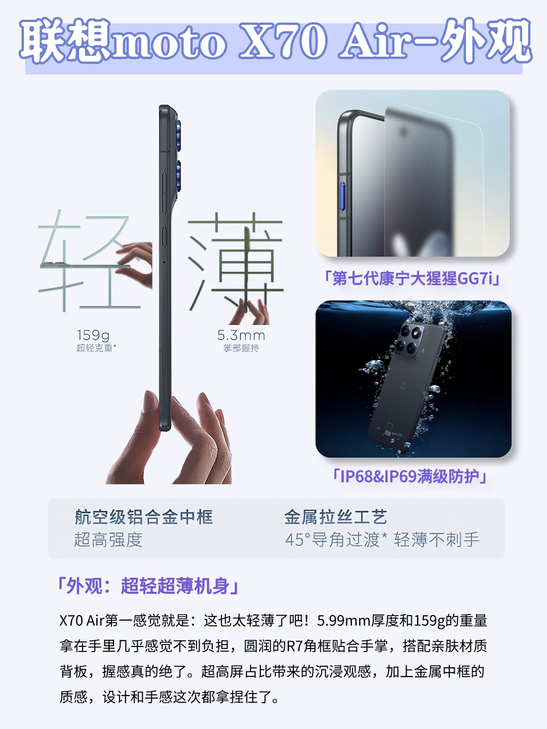 [黄金薯R]联想moto X70 Air配置表真的让我眼前一亮 忍不住想和大家分享这台「六边形战士」 每一个细节都长在我的审美点上[派对R]