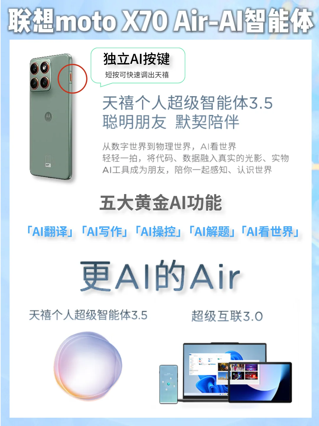 [自拍R]如果你也在找一台「轻薄好看 + 智能好用 + 续航能打」的手机,这款联想moto X70 Air真的值得考虑~